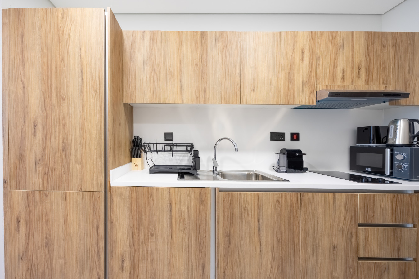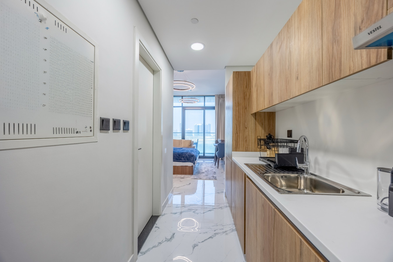• Bright studio layout with open, fully equipped kitchen