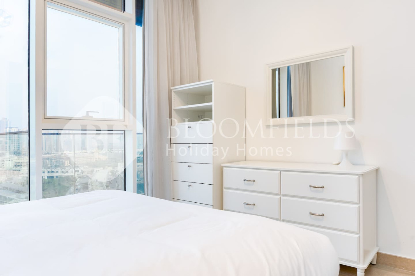 • Ensuite bedroom with double bed, natural light, and built-in storage