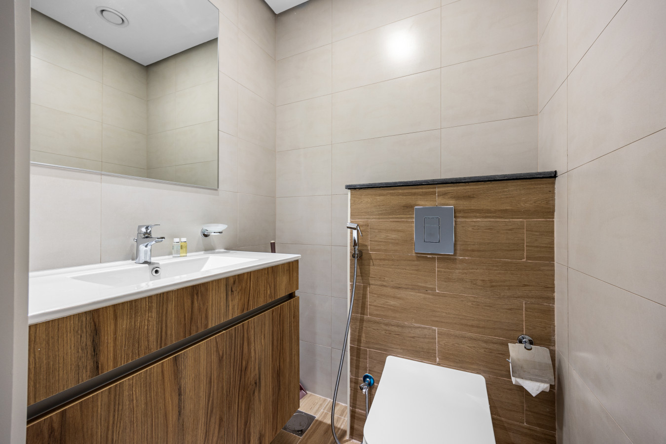 • Sleek bathroom with clean, modern finishes