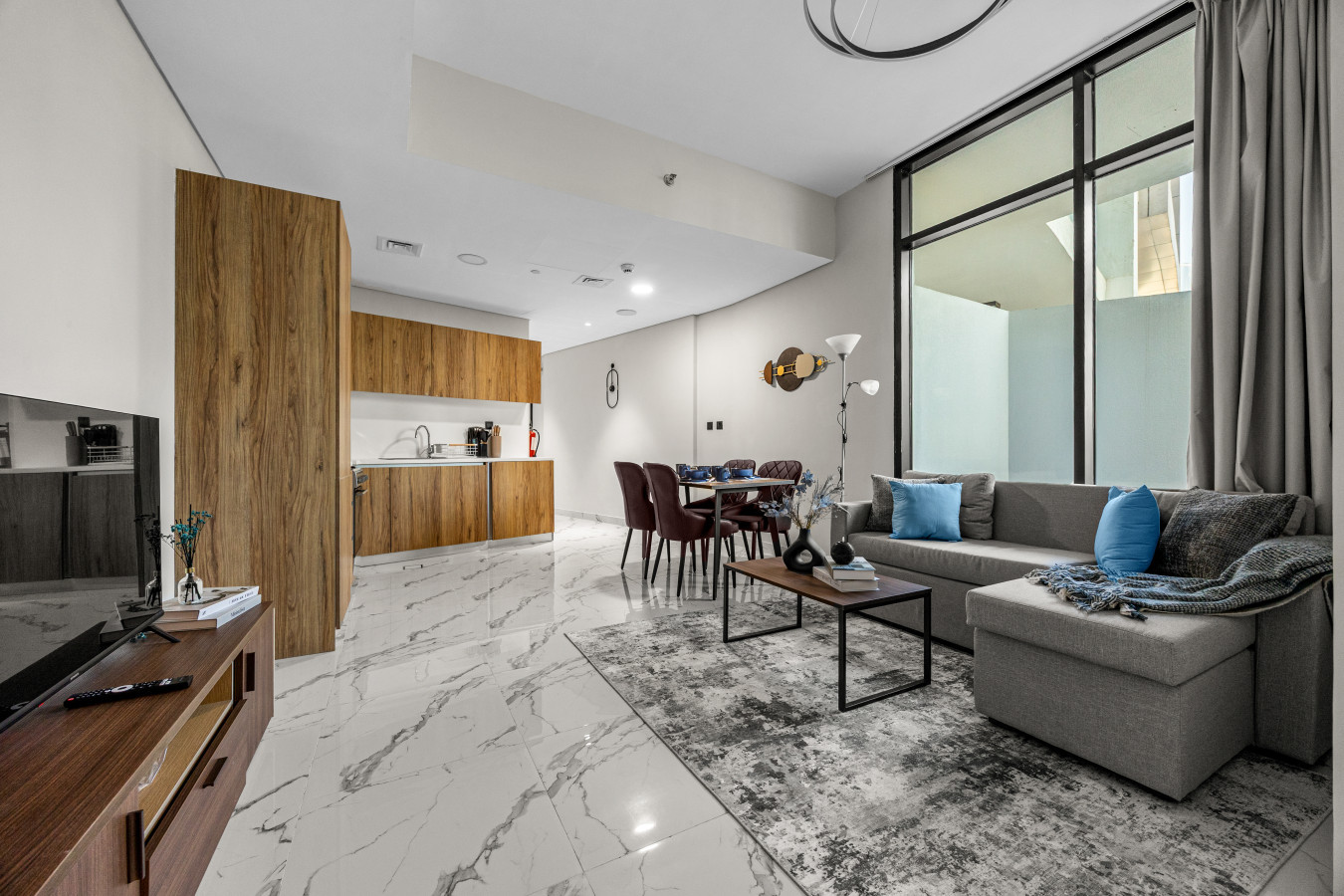 • Spacious living area with smart TV & chic décor
