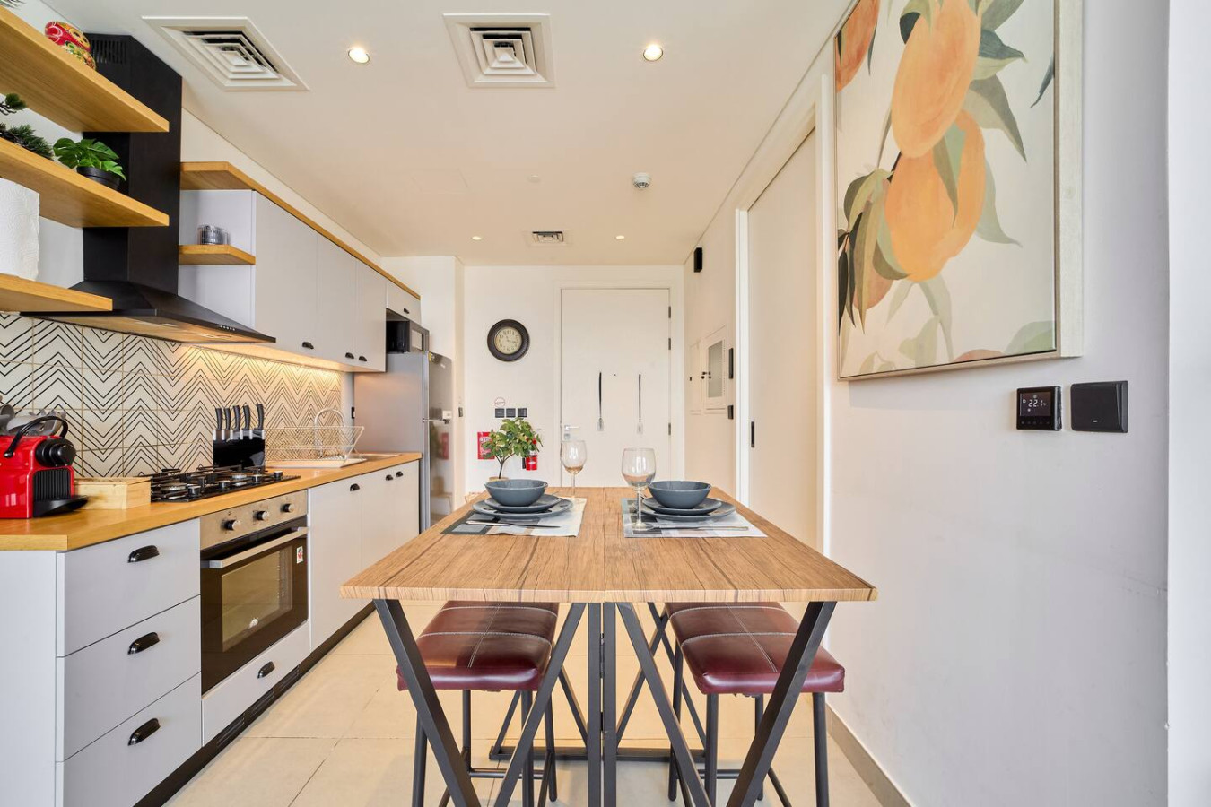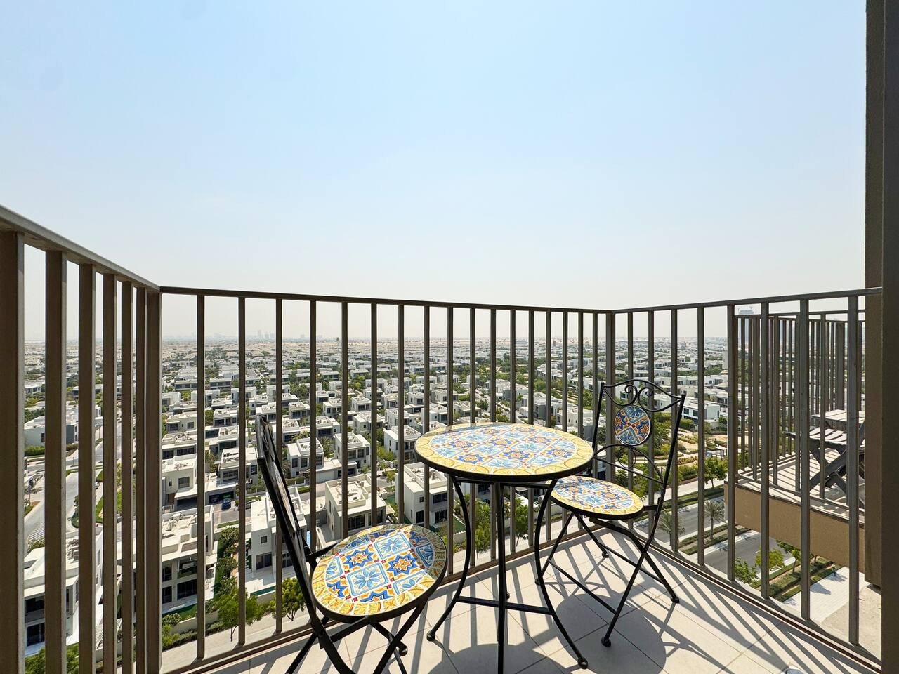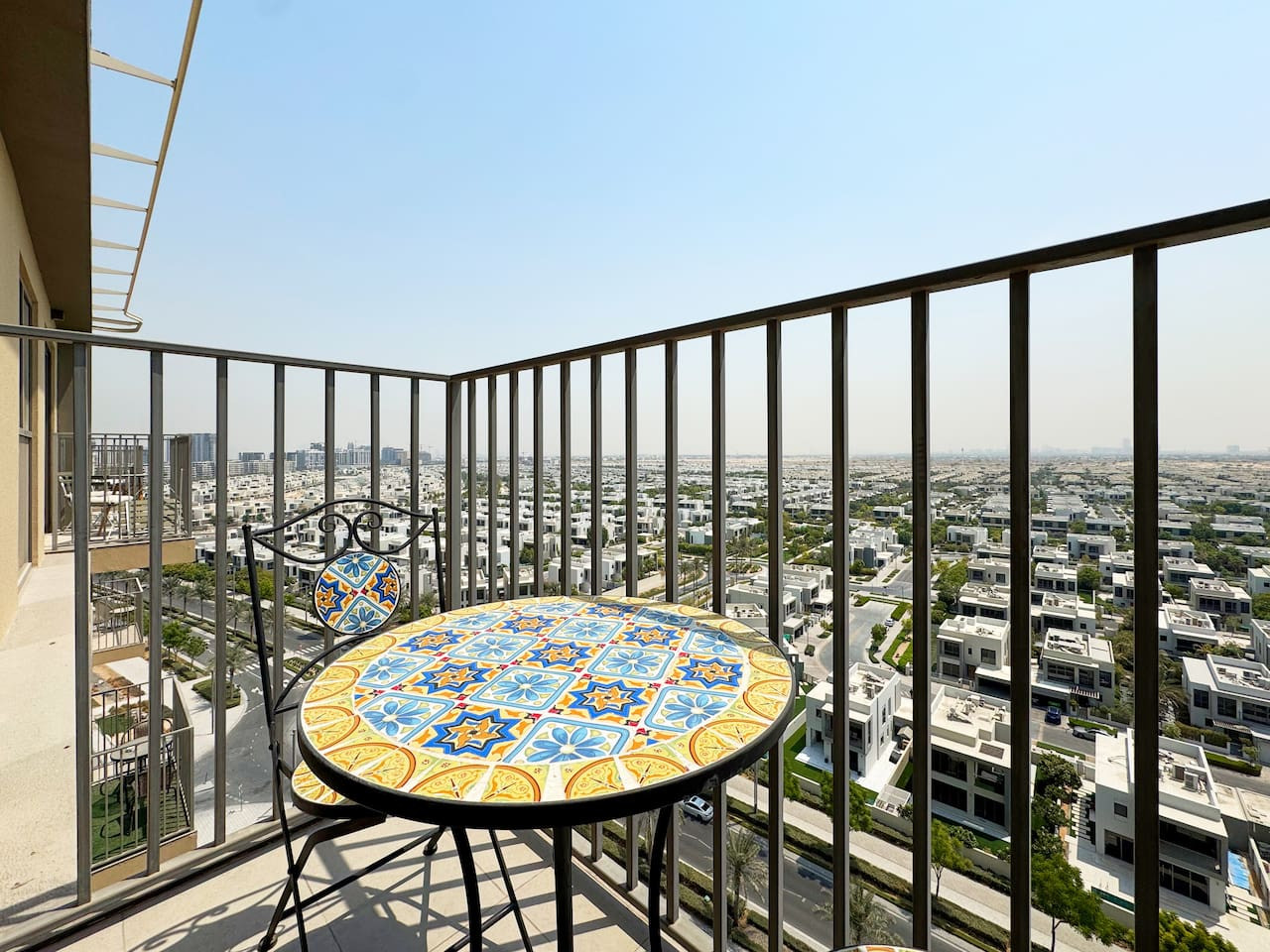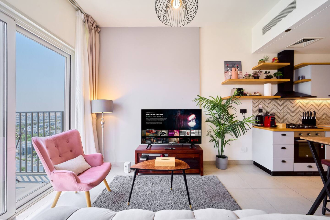 Stay in style at this beautifully designed 1BR in Collective, Dubai Hills. With a carefully curated interior and modern finishes, the apartment blends comfort and elegance. Relax in the cozy living area, cook with ease in the fully equipped kitchen, and step onto the balcony to enjoy scenic Sidra Villas views. Guests have access to a pool, gym, and co-working spaces, perfect for both leisure and business. Just minutes from Dubai Hills Mall, parks, and dining, it’s the ideal Dubai Hills retreat.