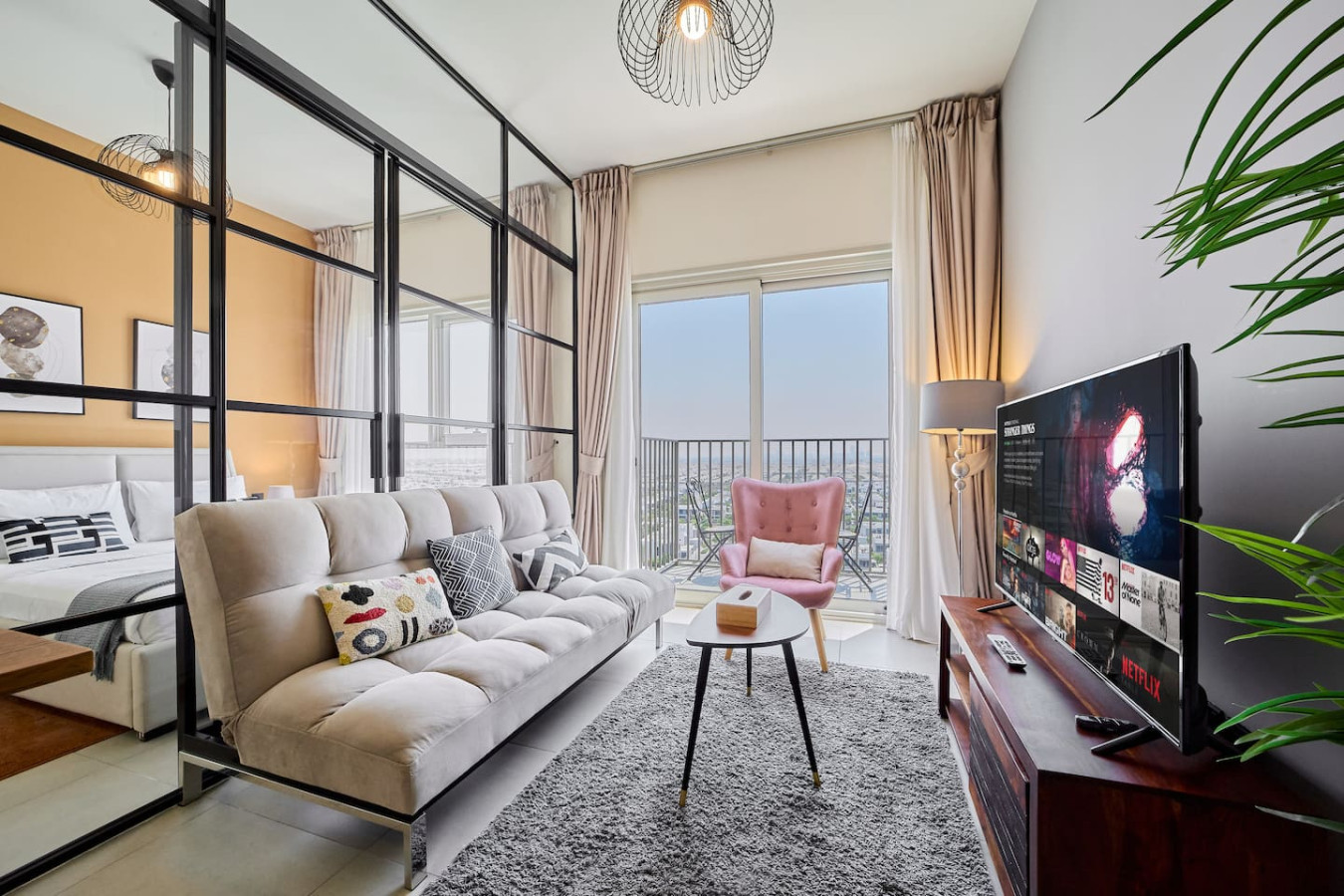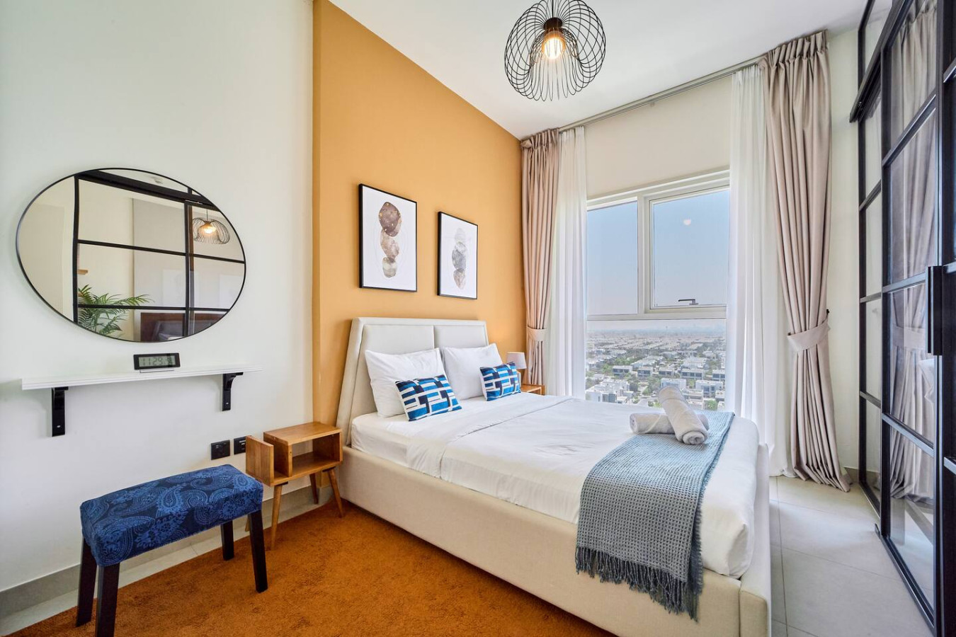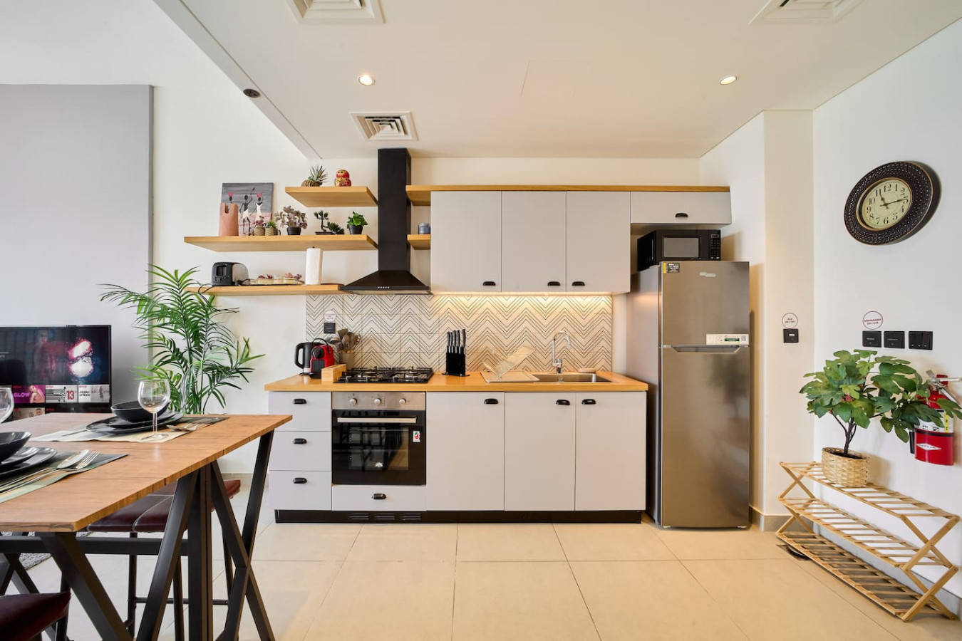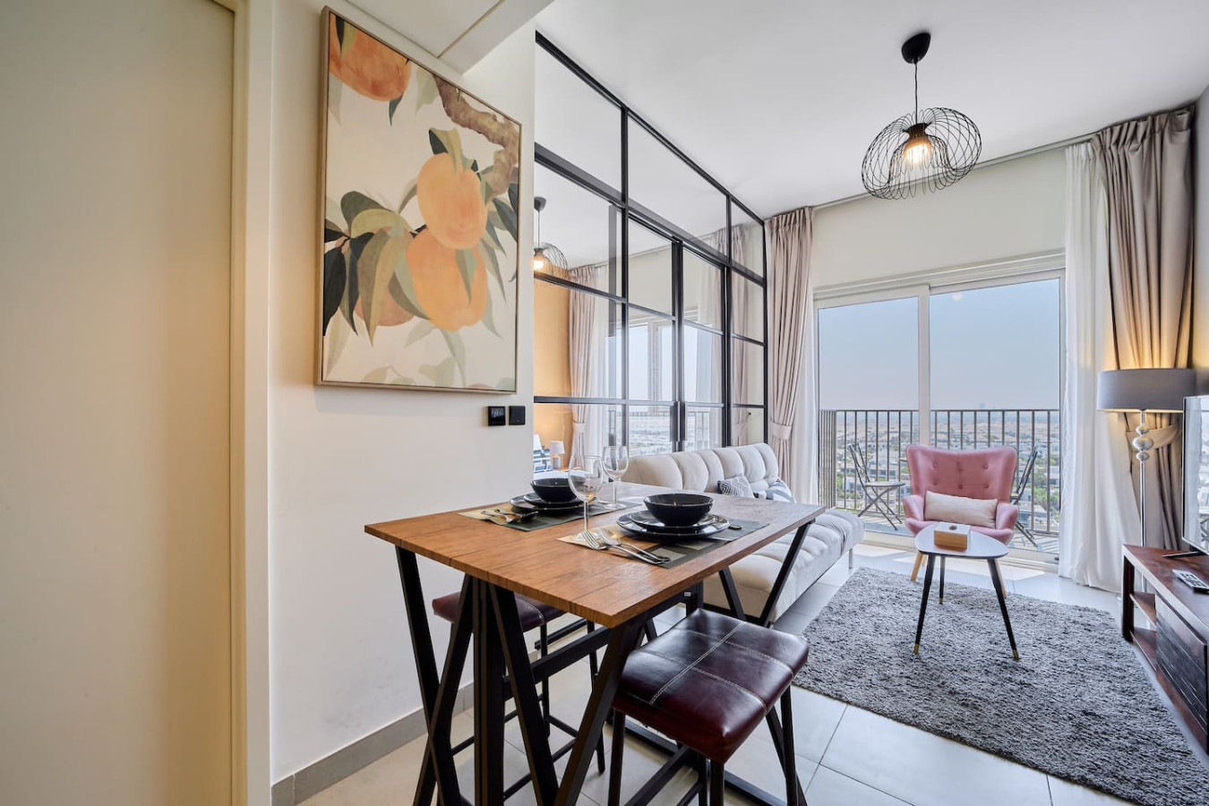 Stay in style at this beautifully designed 1BR in Collective, Dubai Hills. With a carefully curated interior and modern finishes, the apartment blends comfort and elegance. Relax in the cozy living area, cook with ease in the fully equipped kitchen, and step onto the balcony to enjoy scenic Sidra Villas views. Guests have access to a pool, gym, and co-working spaces, perfect for both leisure and business. Just minutes from Dubai Hills Mall, parks, and dining, it’s the ideal Dubai Hills retreat.