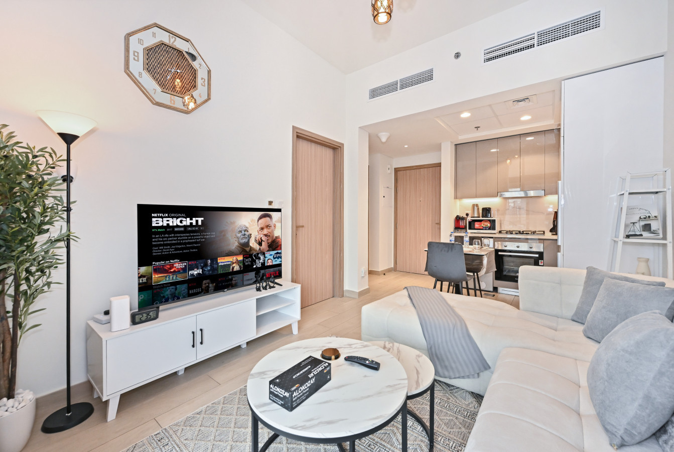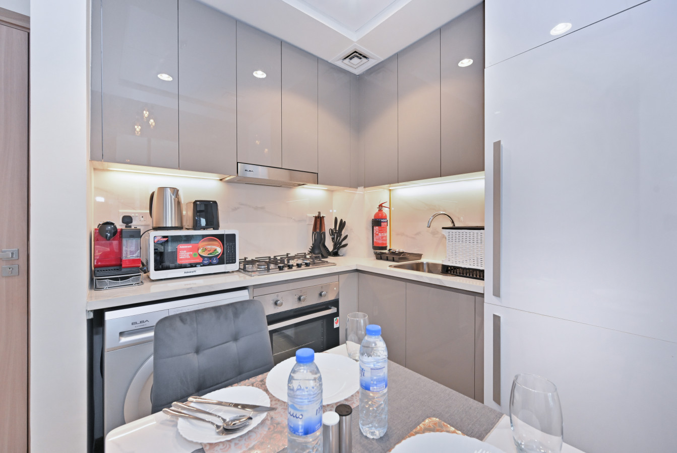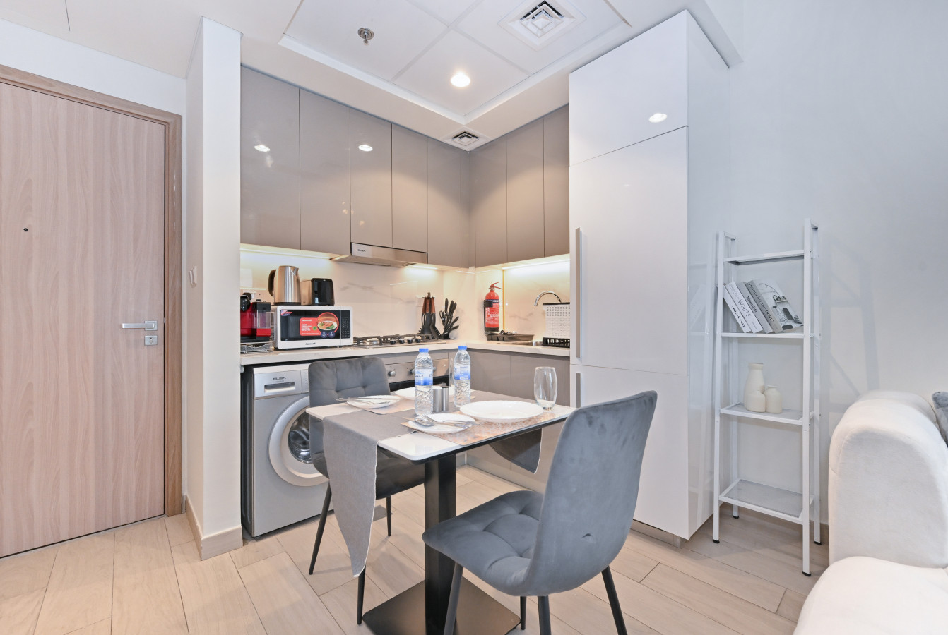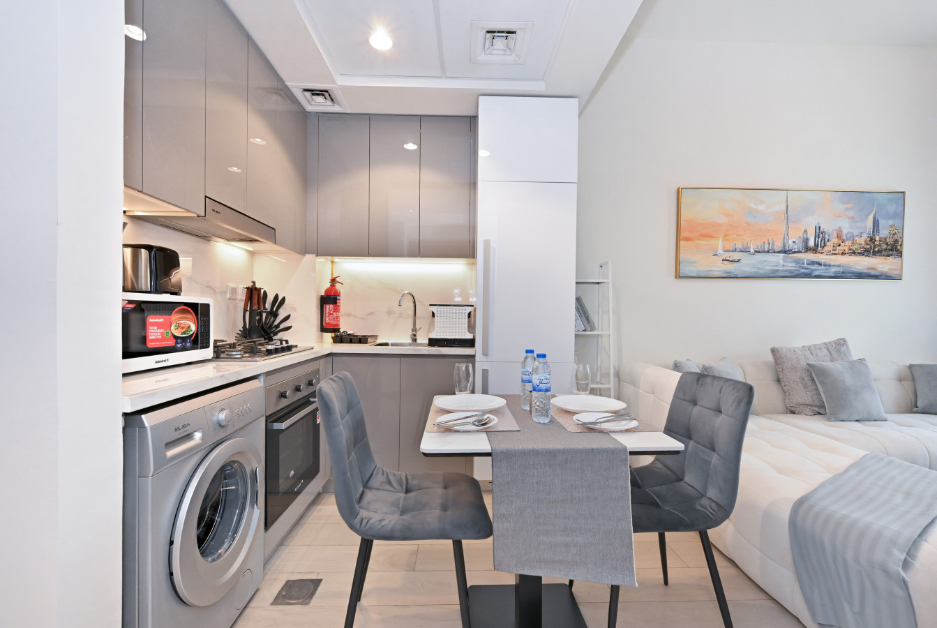 • Fully equipped kitchen with built-in appliances & dining space