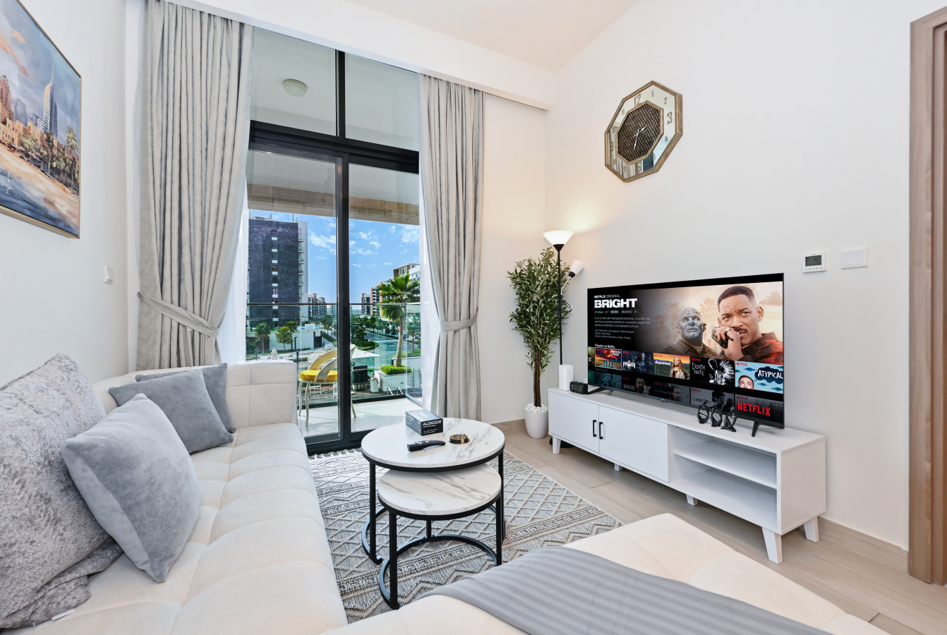 • Bright, modern 1BR with airy layout and floor-to-ceiling windows