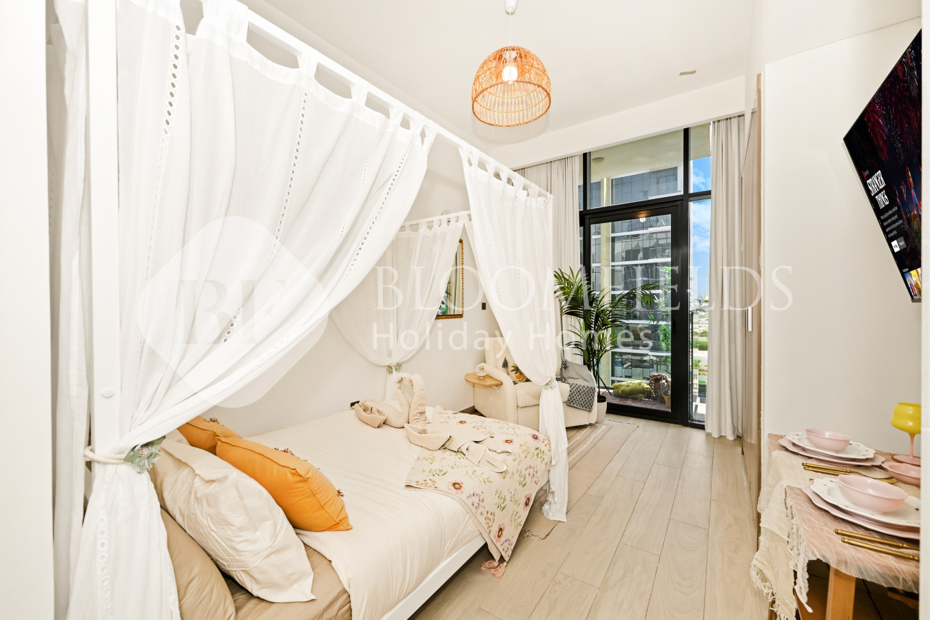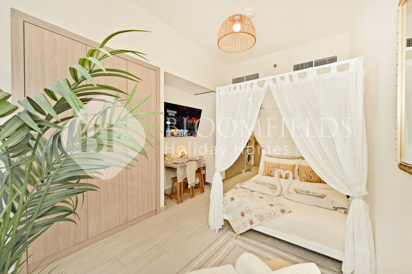 • Charming canopy-style bed for a dreamy, stay-in-all-day feel