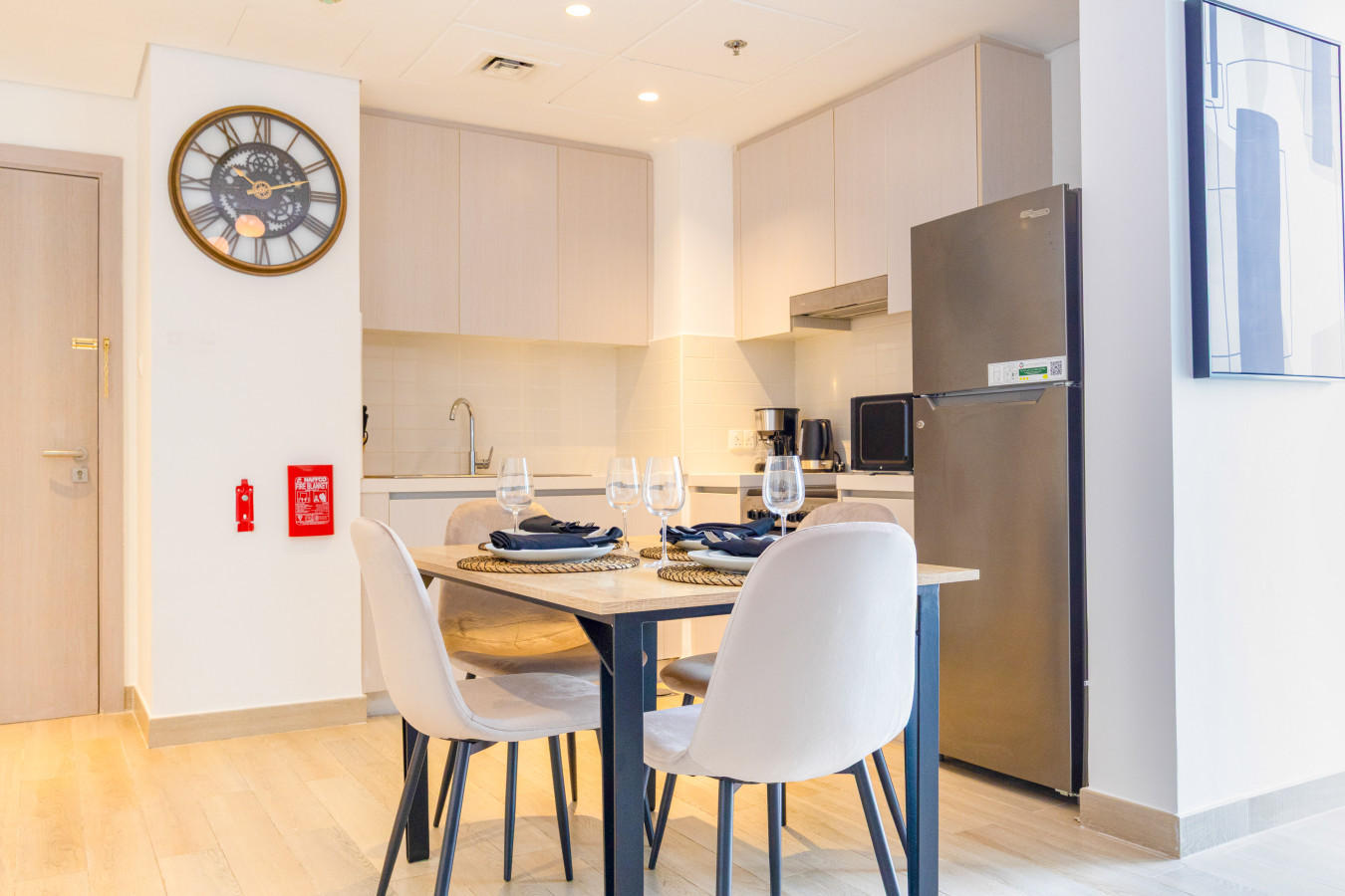 • Fully equipped kitchen + stylish dining setup