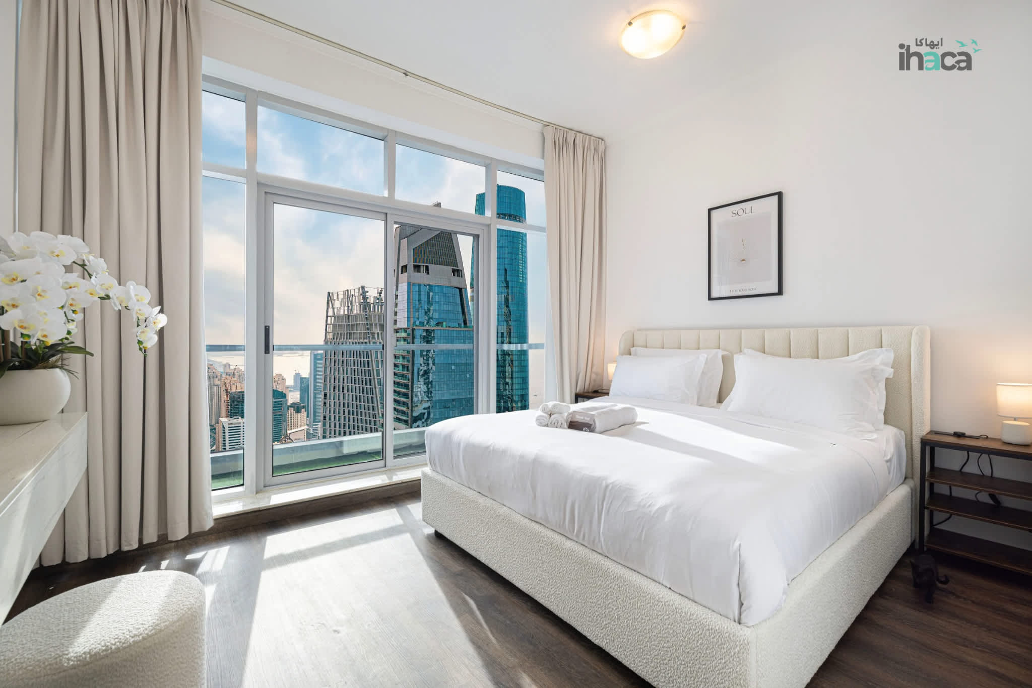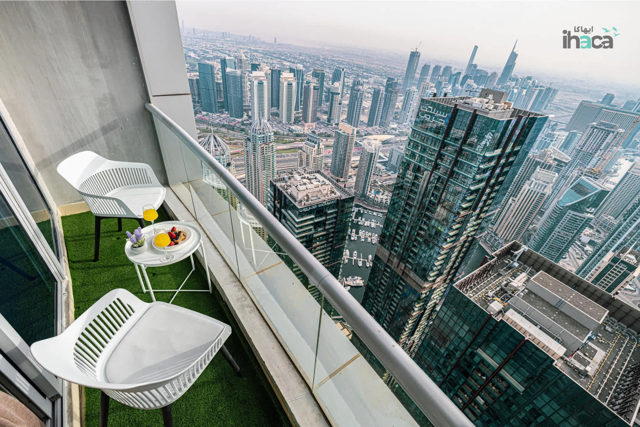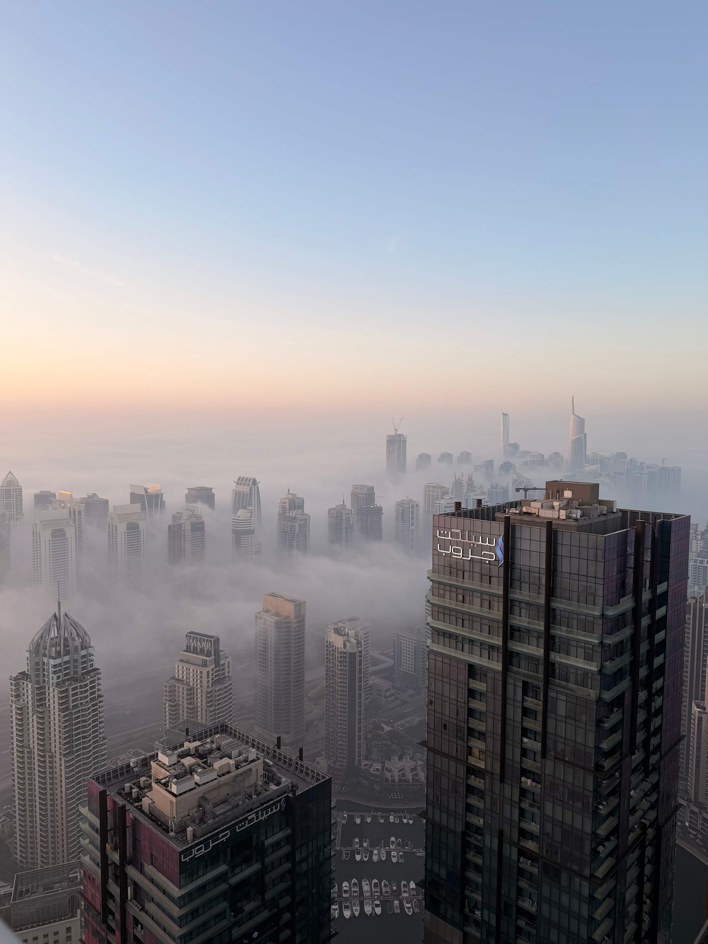 Ranked among the highest Airbnbs in Dubai. Experience Dubai from the 77th floor! This sleek, modern apartment offers magical, panoramic views of the sea, Dubai Marina, and JBR Beach. Perfect for a couple or solo traveler, this cozy retreat above the clouds features a private balcony, floor-to-ceiling windows, and access to a pool, gym, and sauna.