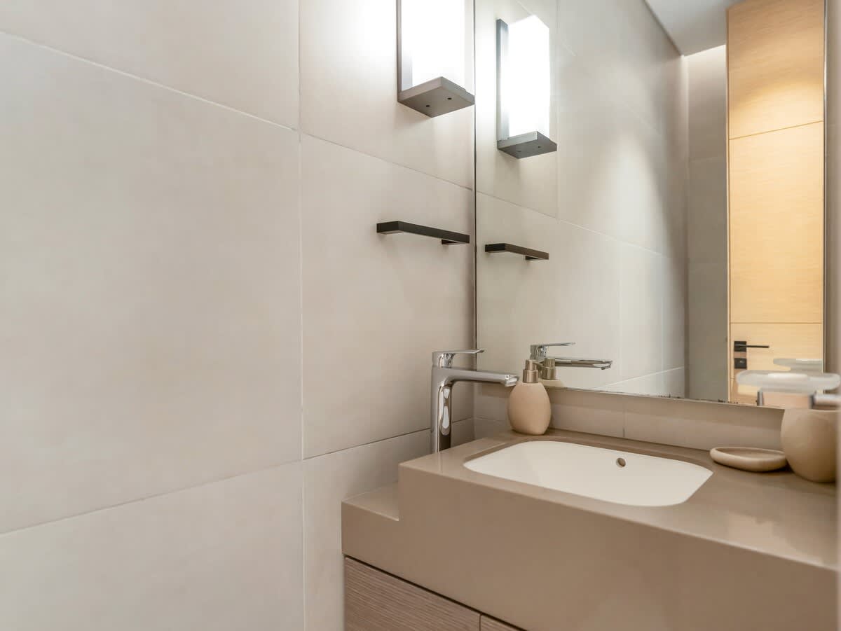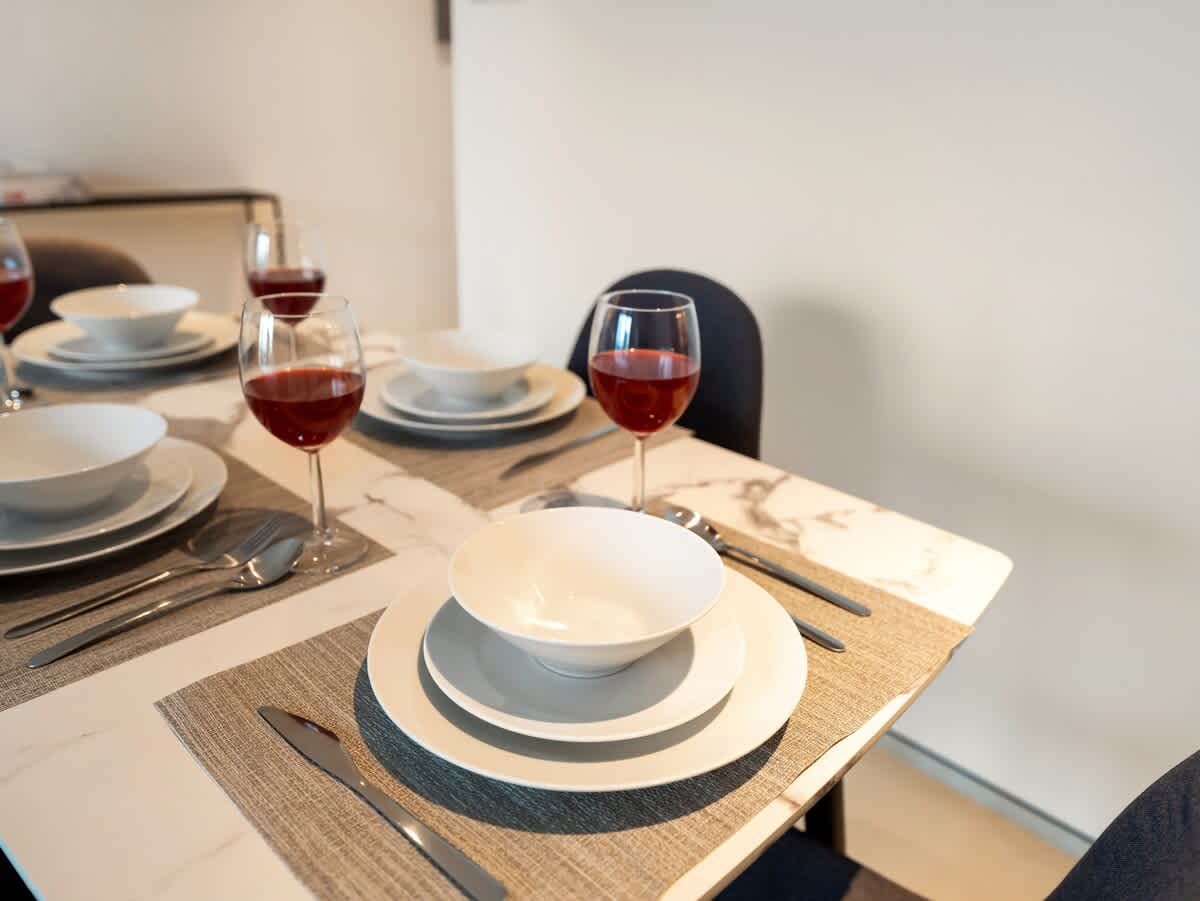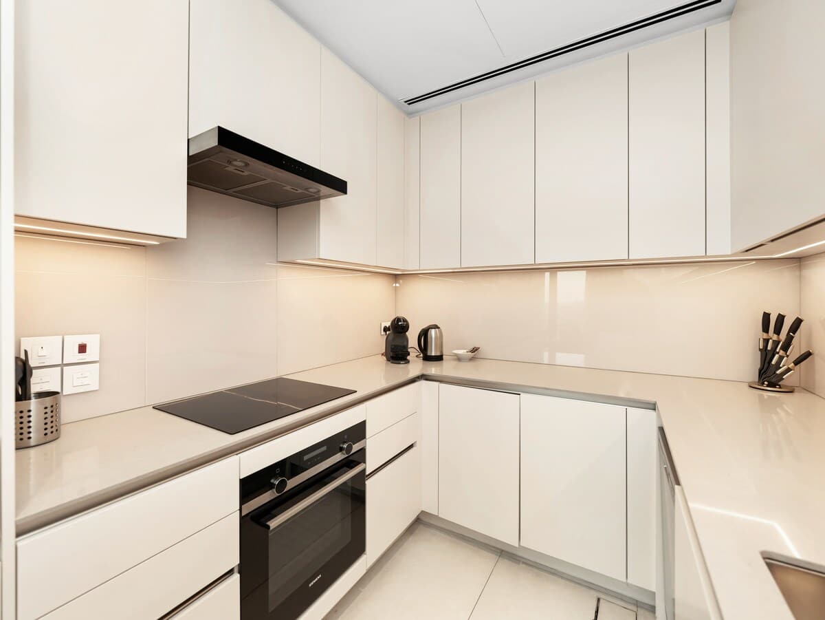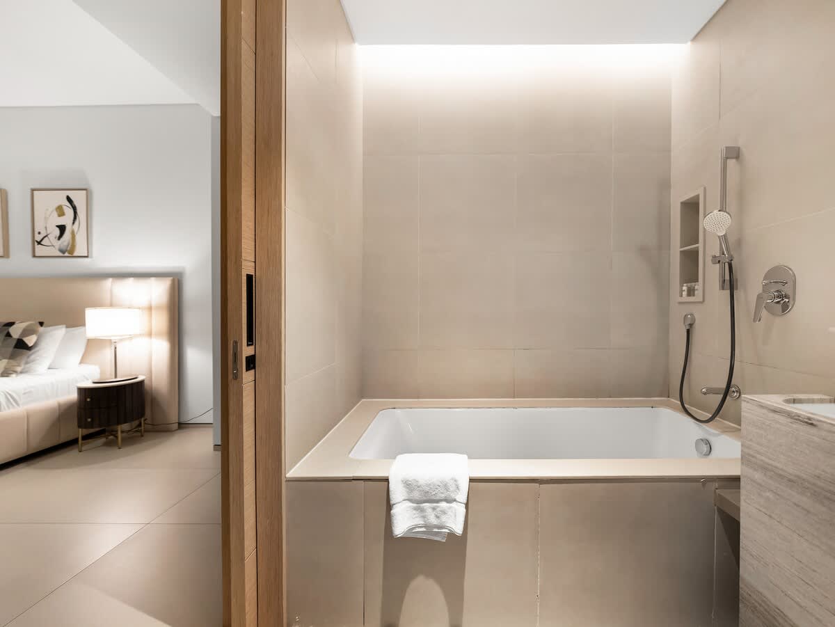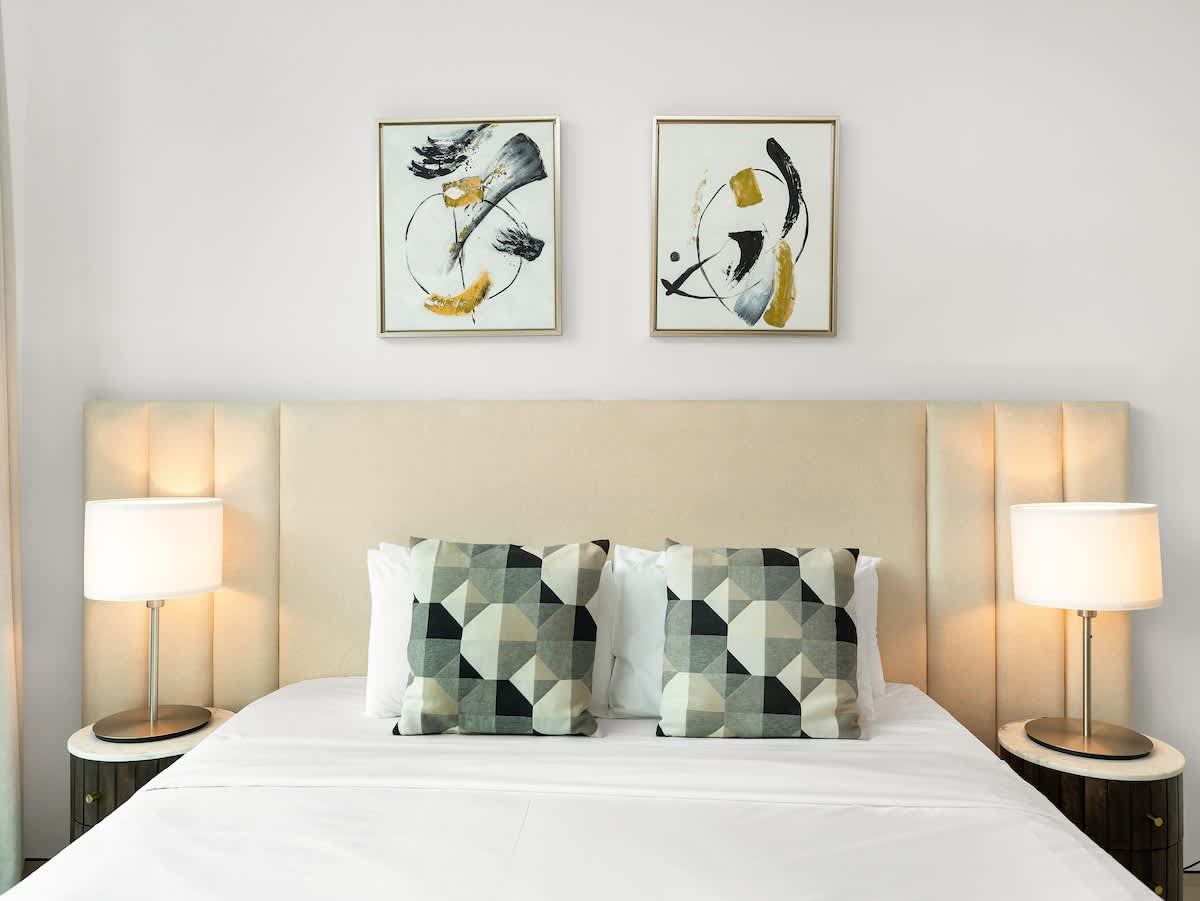 The master bedroom features a plush king-sized bed, dressed in premium linens for a restful night’s sleep. In the living area, you’ll find a spacious double-sized sofa bed, providing extra sleeping space for additional guests. Whether you’re traveling as a couple, with family, or friends, this apartment ensures a relaxing and accommodating stay for everyone.