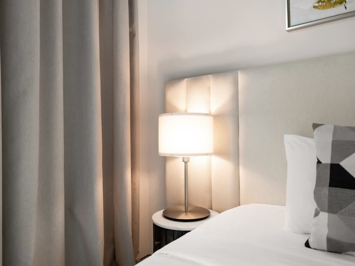 – A king-sized bed with premium linens.
