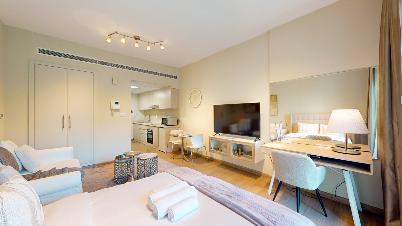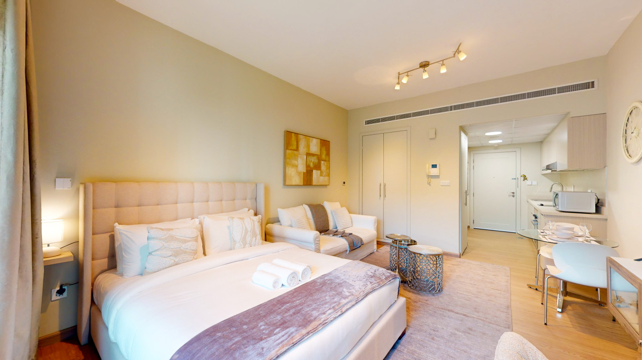 This chic upgraded studio apartment is perfect for two guests or a solo traveller visiting Dubai. With elegant furnishings, modern finishes and state of the art building facilities, guests have all the amenities needed for a comfortable stay including high-speed Wi-Fi throughout with average speeds of 250mbps.