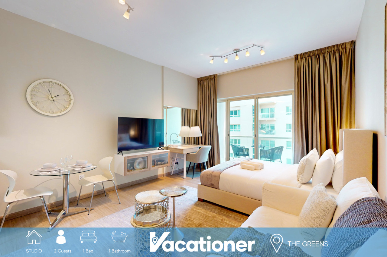 Guests are sure to have a perfect stay in this chic upgraded studio apartment located in the peaceful suburb of The Greens. This community is an ideal area to stay for nature lovers in Dubai, giving guests the best of both a suburban lifestyle while offering quick access to some of Dubai’s iconic attractions. Just a short drive from exciting areas like JBR beach and the Dubai Marina or travel a bit further to Downtown and explore Iconic attractions like the Dubai Mall and Burj Khalifa.