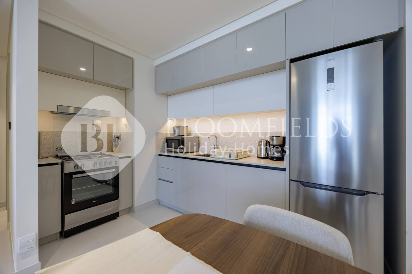 • Cozy living area + fully equipped kitchen