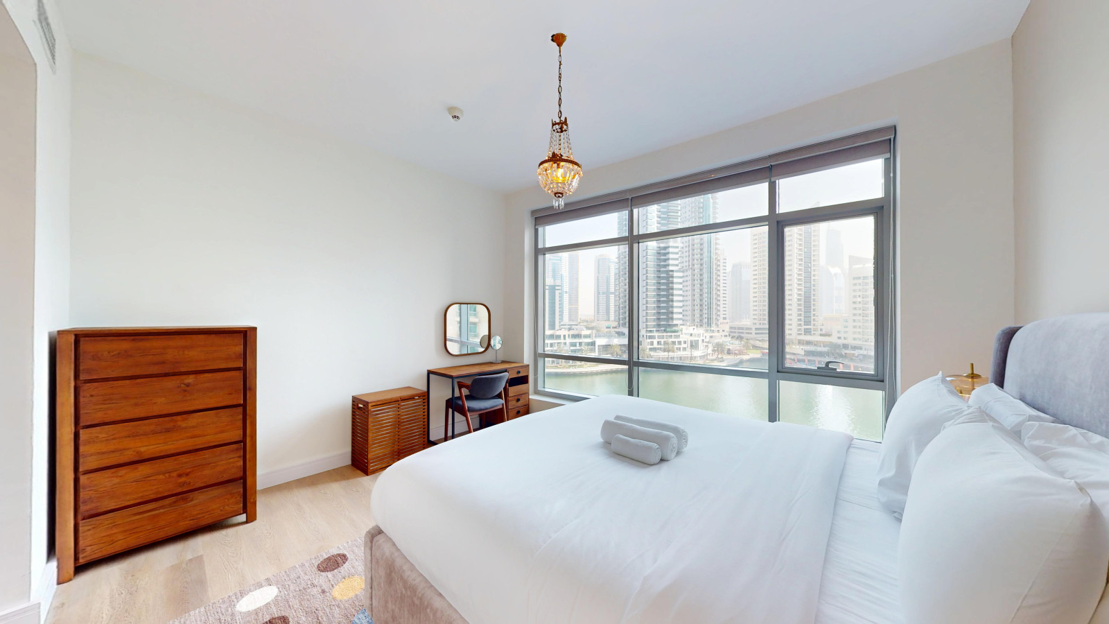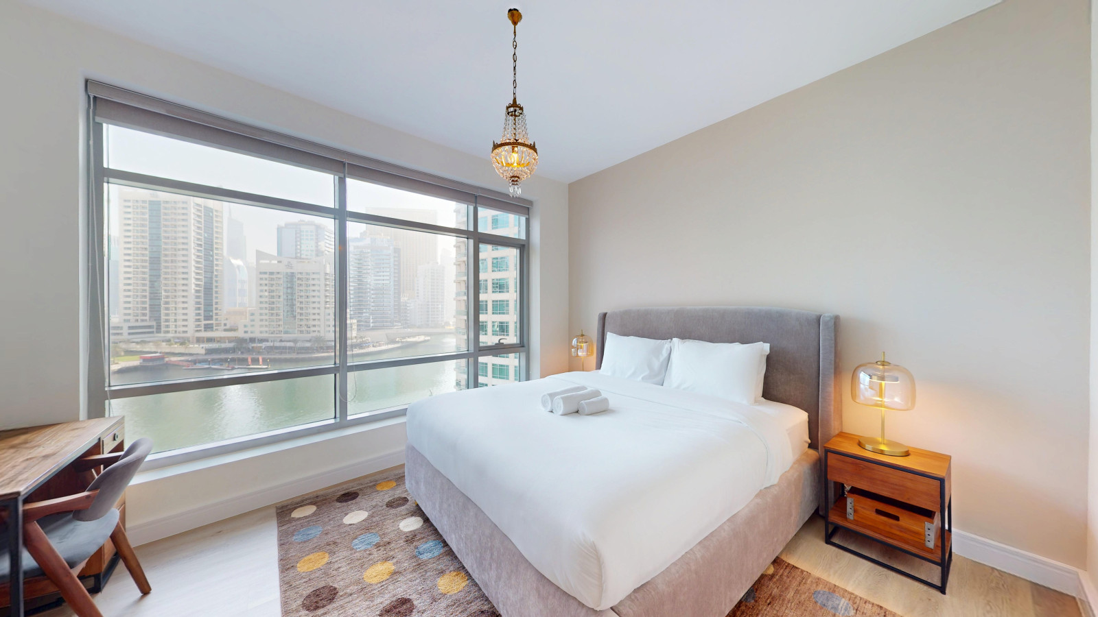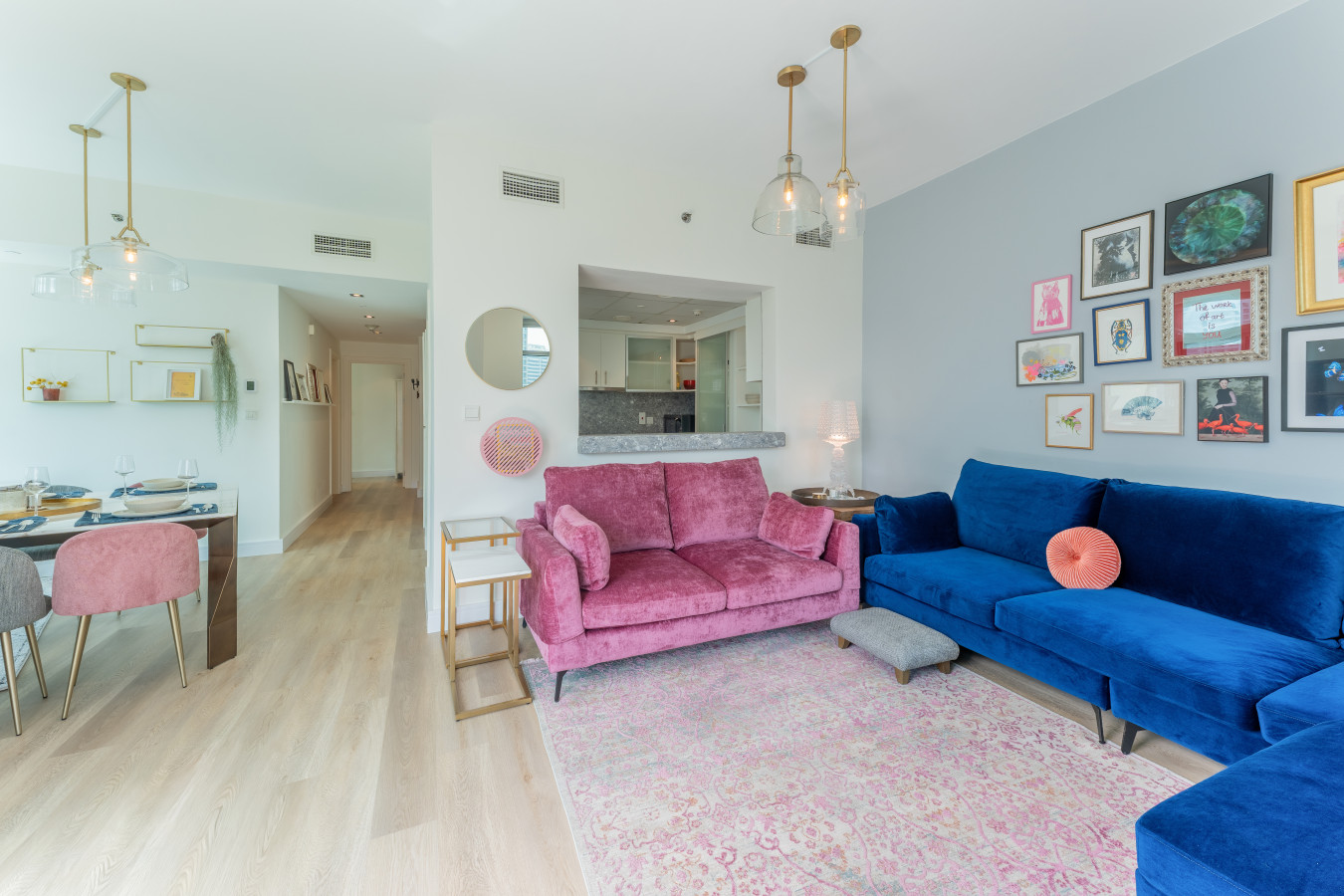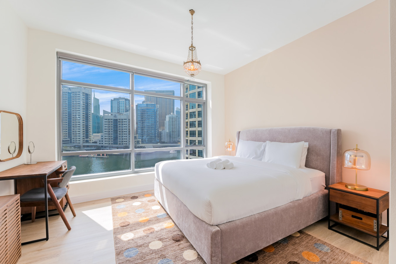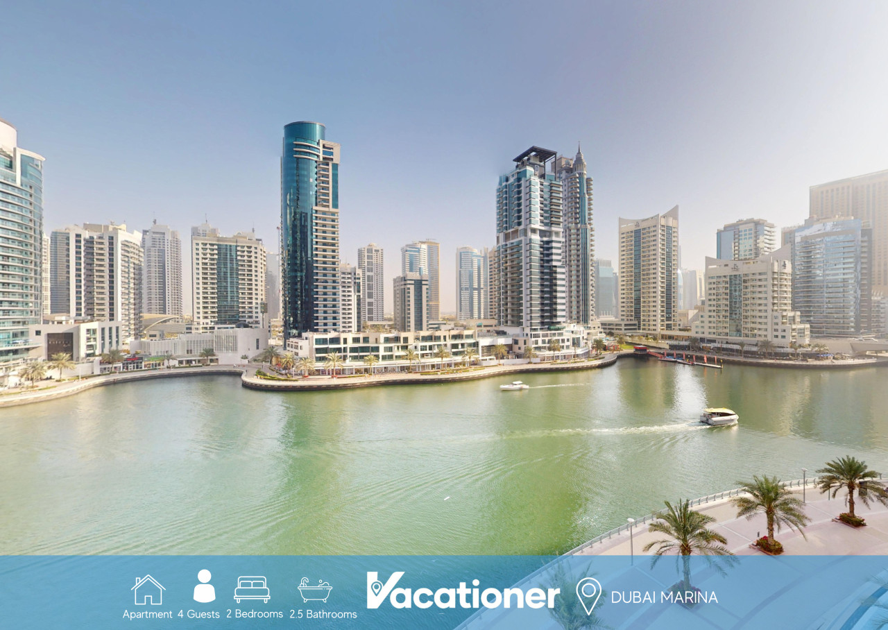 This vibrant two-bedroom apartment in Dubai Marina is an ideal retreat for families or group travellers seeking comfort and relaxation. Floor-to-ceiling windows flood the space with natural light while showcasing beautiful marina views, creating a warm and inviting atmosphere. Thoughtfully designed for unwinding, it offers the perfect sanctuary after a day exploring the city.
