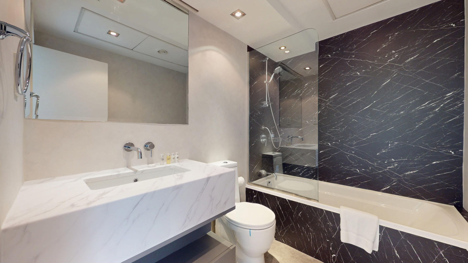 – Private en-suite bathroom with bathtub, shower, and all essential amenities