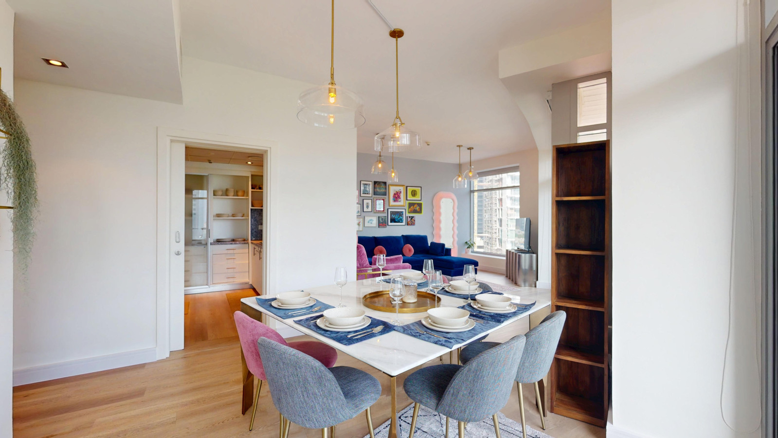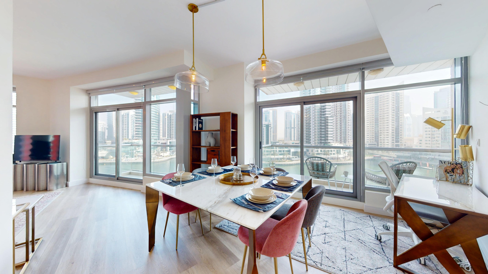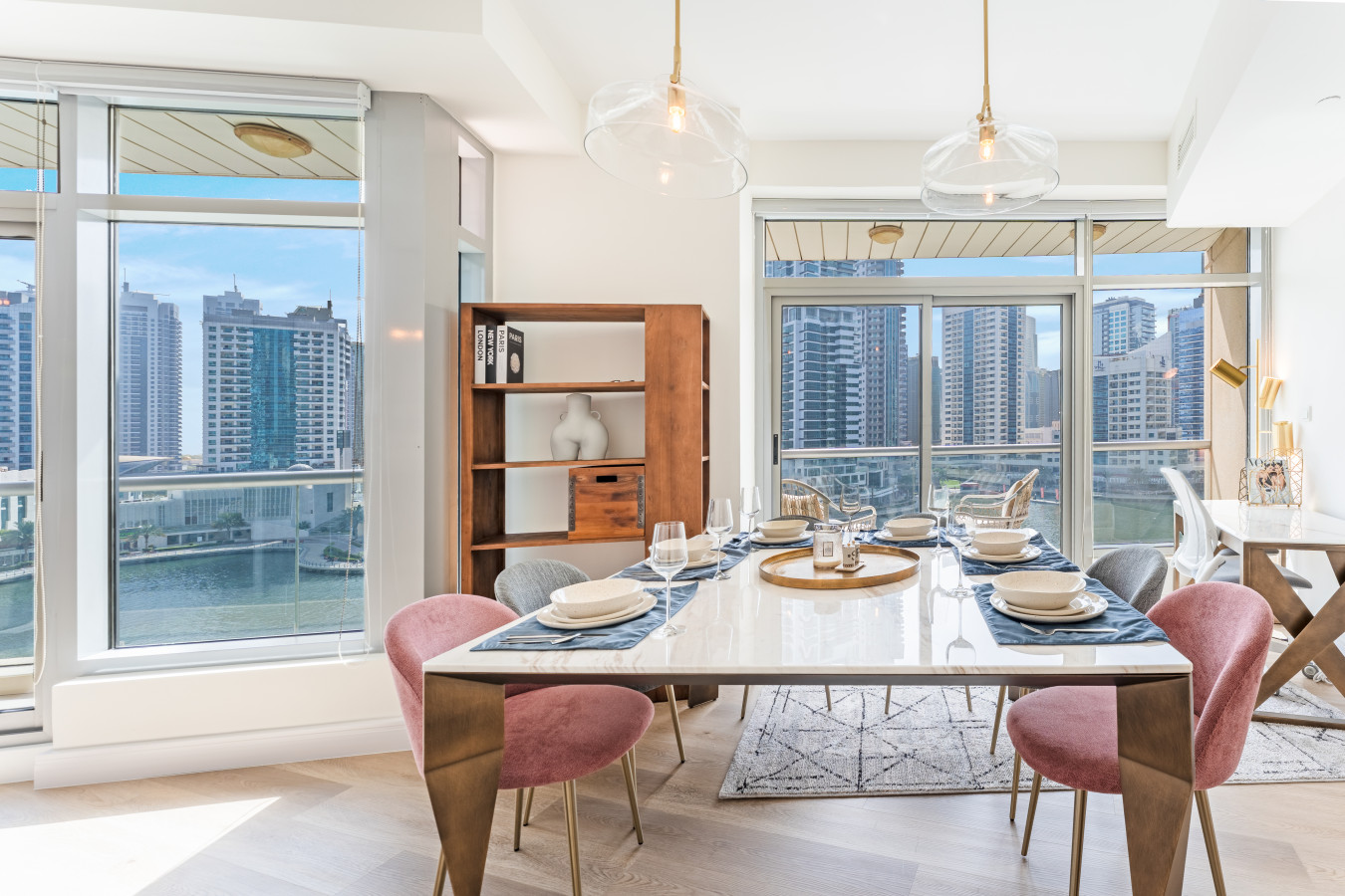 – Dining table for six, ideal for family or friends gatherings with the view of Marina