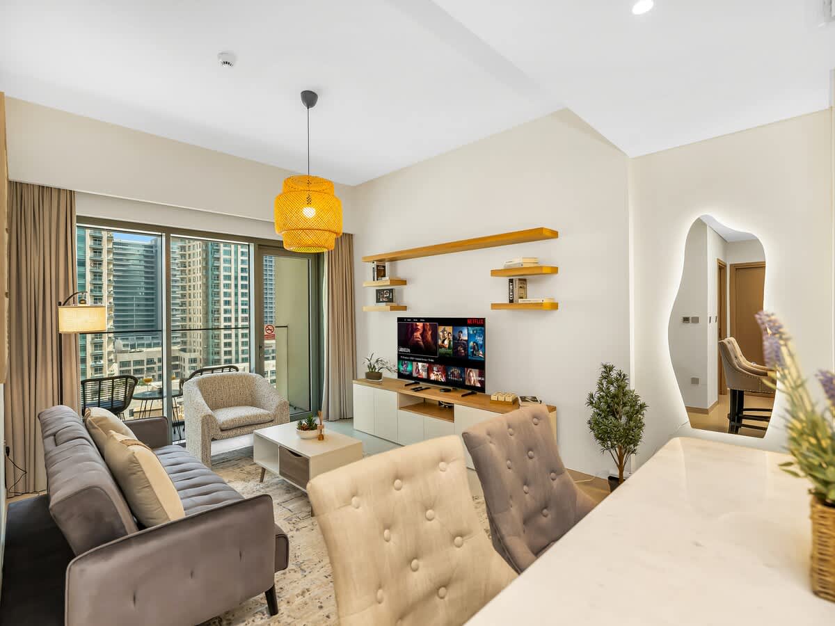 Stay in the heart of Dubai! This cozy and stylish apartment is just a 5-minute walk from the iconic Burj Khalifa and Dubai Mall. Located in Downtown, it offers a comfortable stay with modern furnishings, a fully equipped kitchen, and stunning city views. Enjoy top-notch amenities, including a pool, gym, and high-speed WiFi. Perfect for business or leisure travelers looking for convenience and luxury. Experience the best of Dubai from this prime location!