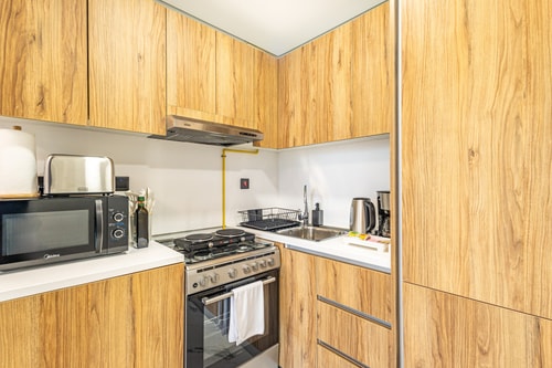 The one-bed room apartment was conveniently located and generally clean, with most amenities working fine. However, the space felt quite cramped for comfortable staying, and the sofa was pretty uncomfortable for lounging.