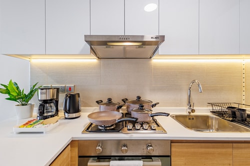 Единственный минус был в том, что дом совсем новый. И пожарную сигнализацию не отладили нормально. Охранник сказал, она слишком чувствительна и реагирует на любую подогревшую еду. Поэтому сигнализация срабатывала даже ночью. Спасибо отличному сну, нам это не сильно помешало.