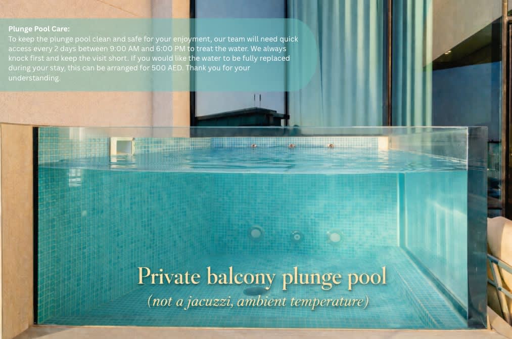 – shared outdoor pool (seasonal) and balcony plunge pool