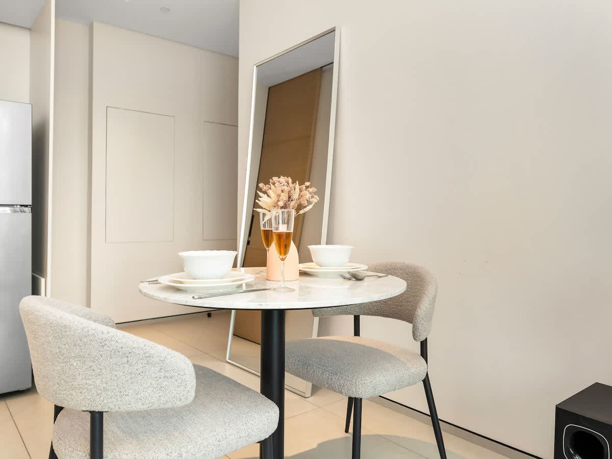 Experience luxury living at The Address JBR. This modern 1-bedroom apartment offers elegant interiors, a cozy living area, a fully equipped kitchen, Smart TV, high-speed WiFi, and stunning Marina views. Enjoy premium amenities including pools, gym, beach access, and 24/7 security. Perfectly located near dining, shopping, and the beach. Ideal for couples, solo travelers, or business guests. Your perfect Dubai escape awaits!