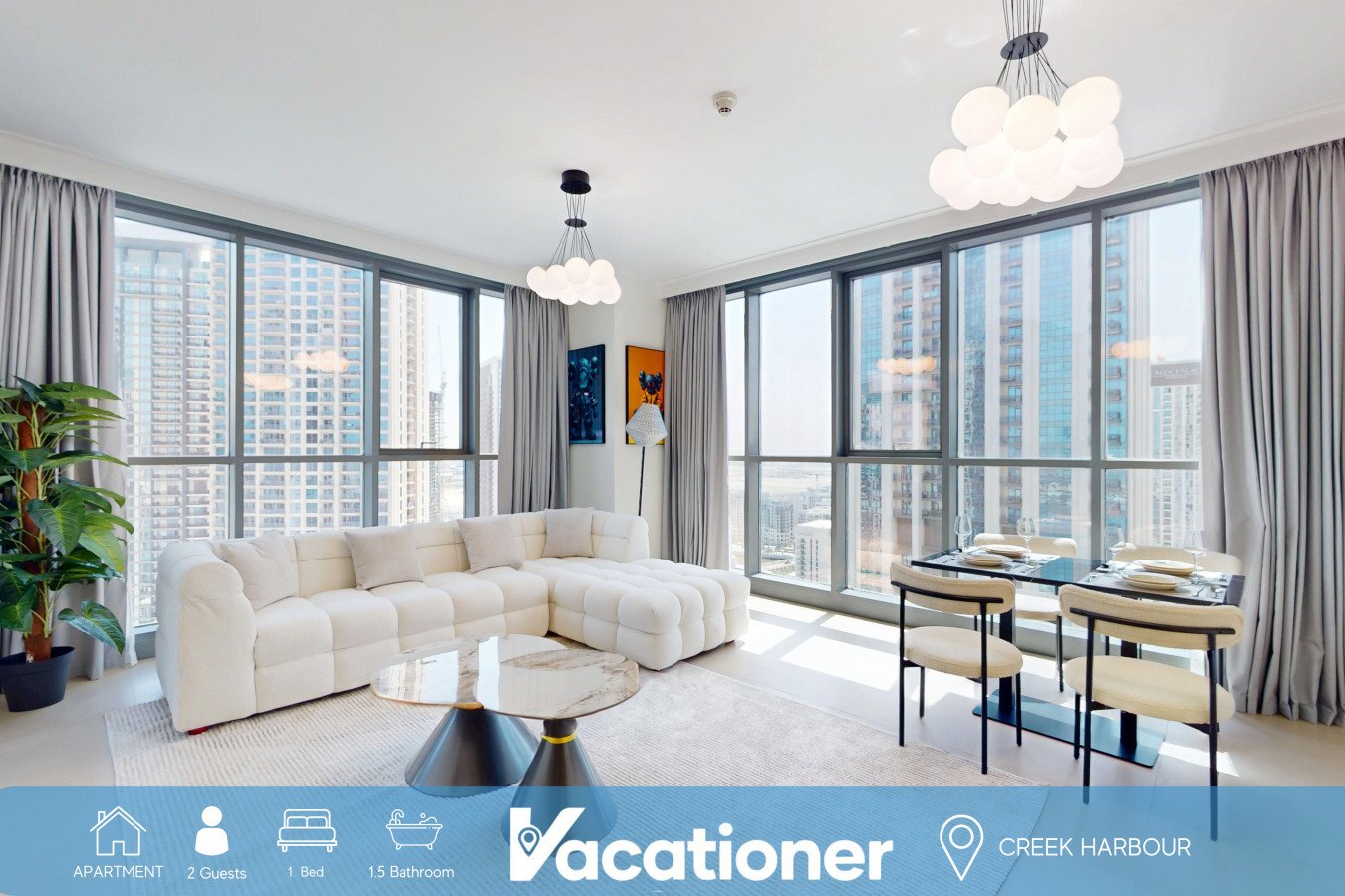 Located in the vibrant community of Dubai Creek Harbour, this remarkable apartment located on the 27th floor offers an extraordinary stay with a perfect blend of convenience and relaxation for its view and furnishing. Surrounded by lush green oasis, complete with scenic seaside walkways, enticing restaurants, and charming shops, providing a peaceful escape right at your doorstep. Easy access to Dubai’s top attractions, ensuring that guests can easily experience the excitement of the city.