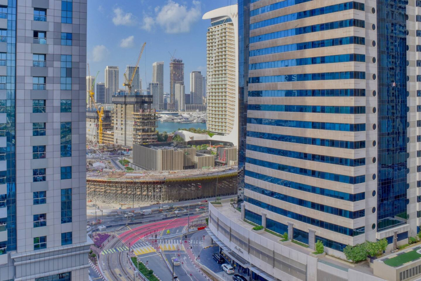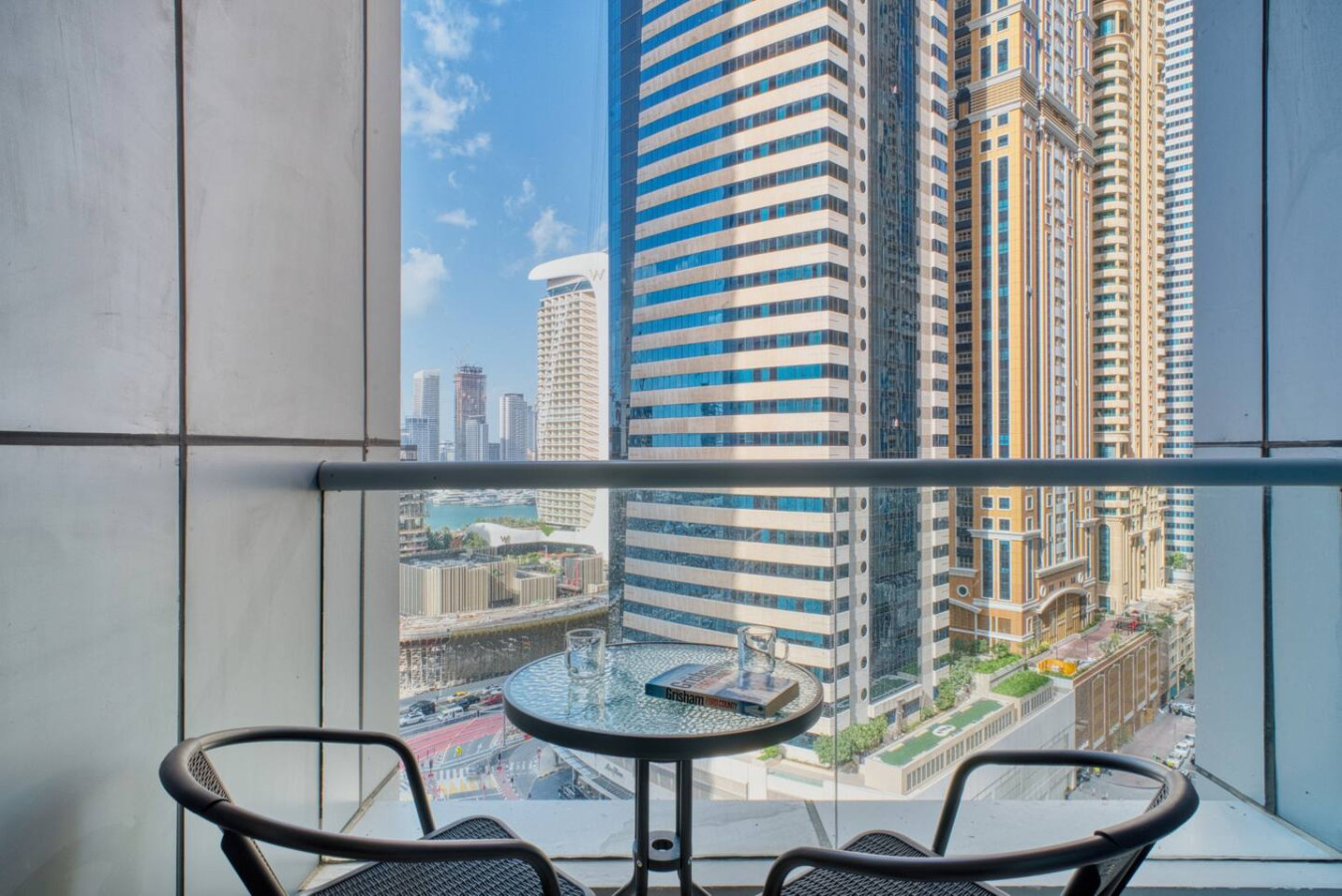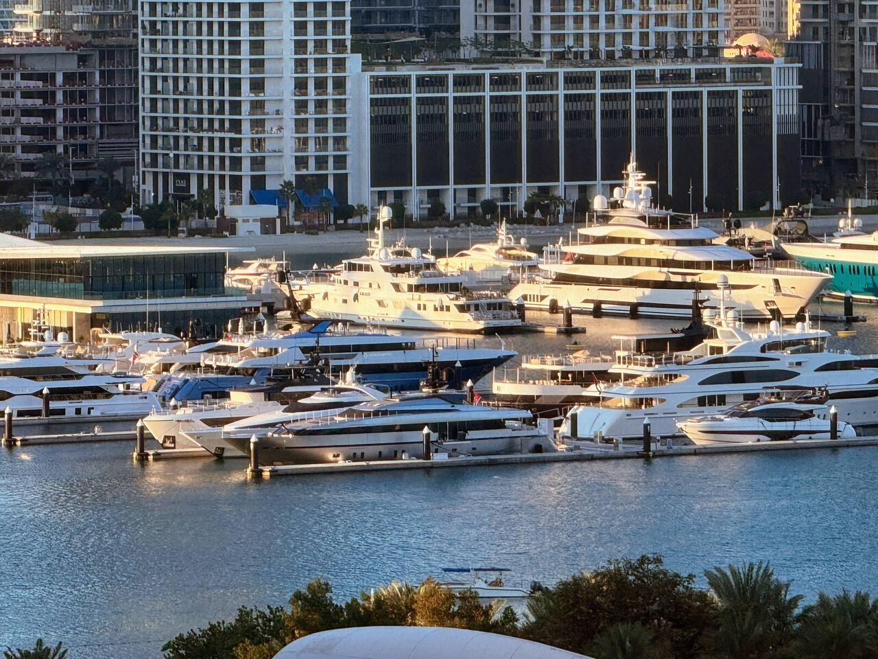 Step outside and you’re surrounded by a lively promenade lined with cafés, restaurants, and everyday conveniences. Morning walks are easy here. The marina path curves along the water, with yachts drifting by and towers reflecting the sun. It feels energetic, but never chaotic.