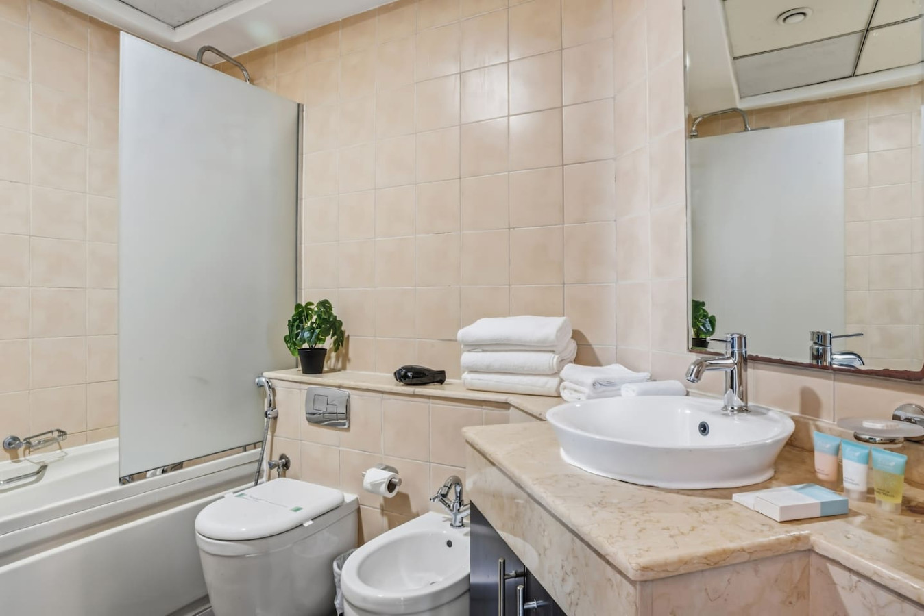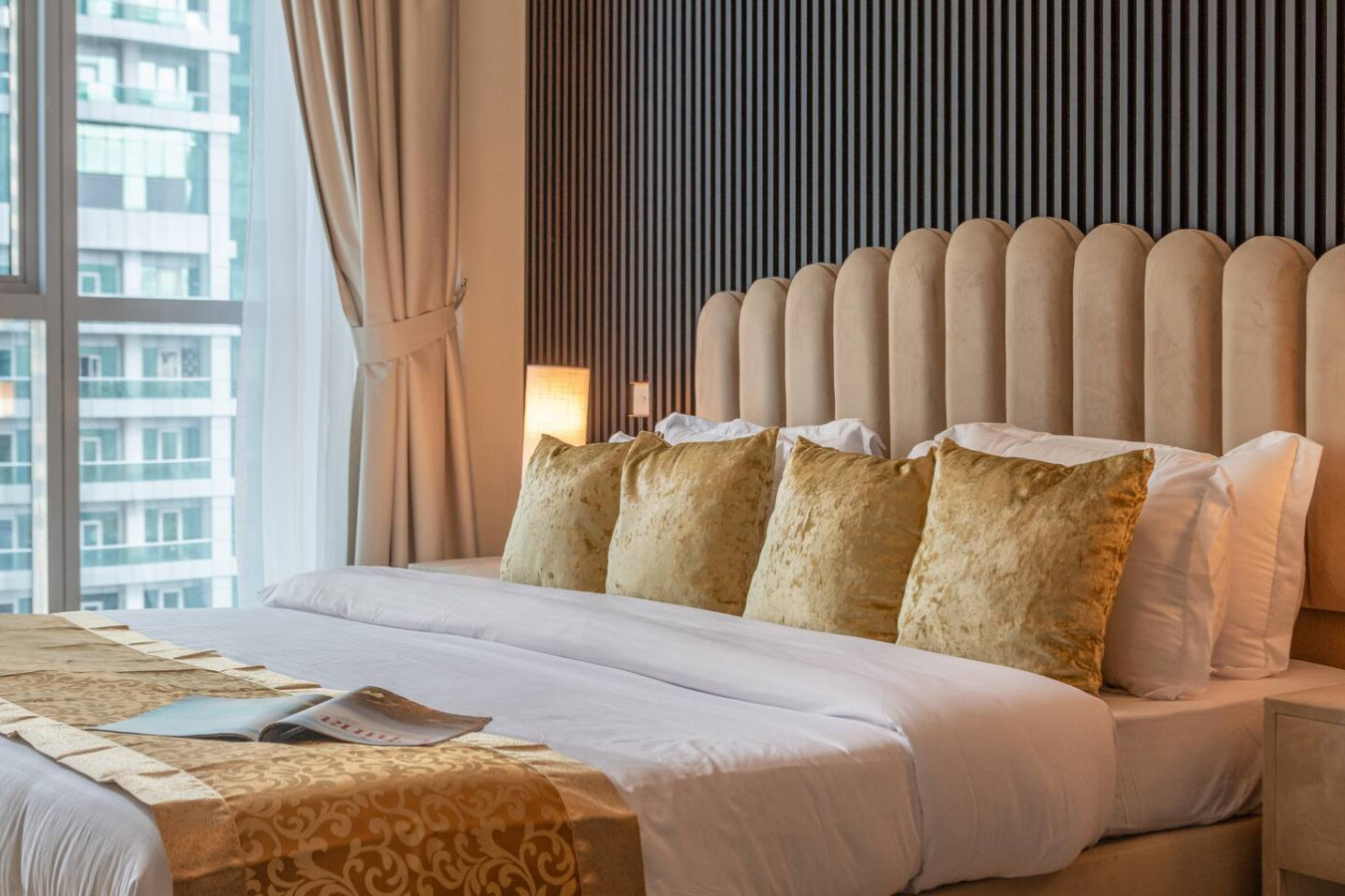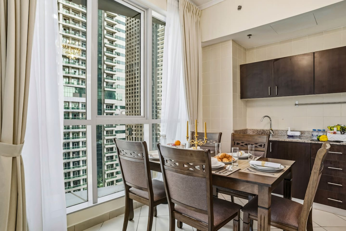Step outside and you’re surrounded by a lively promenade lined with cafés, restaurants, and everyday conveniences. Morning walks are easy here. The marina path curves along the water, with yachts drifting by and towers reflecting the sun. It feels energetic, but never chaotic.