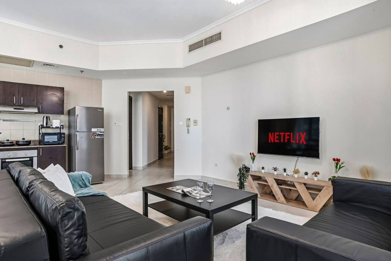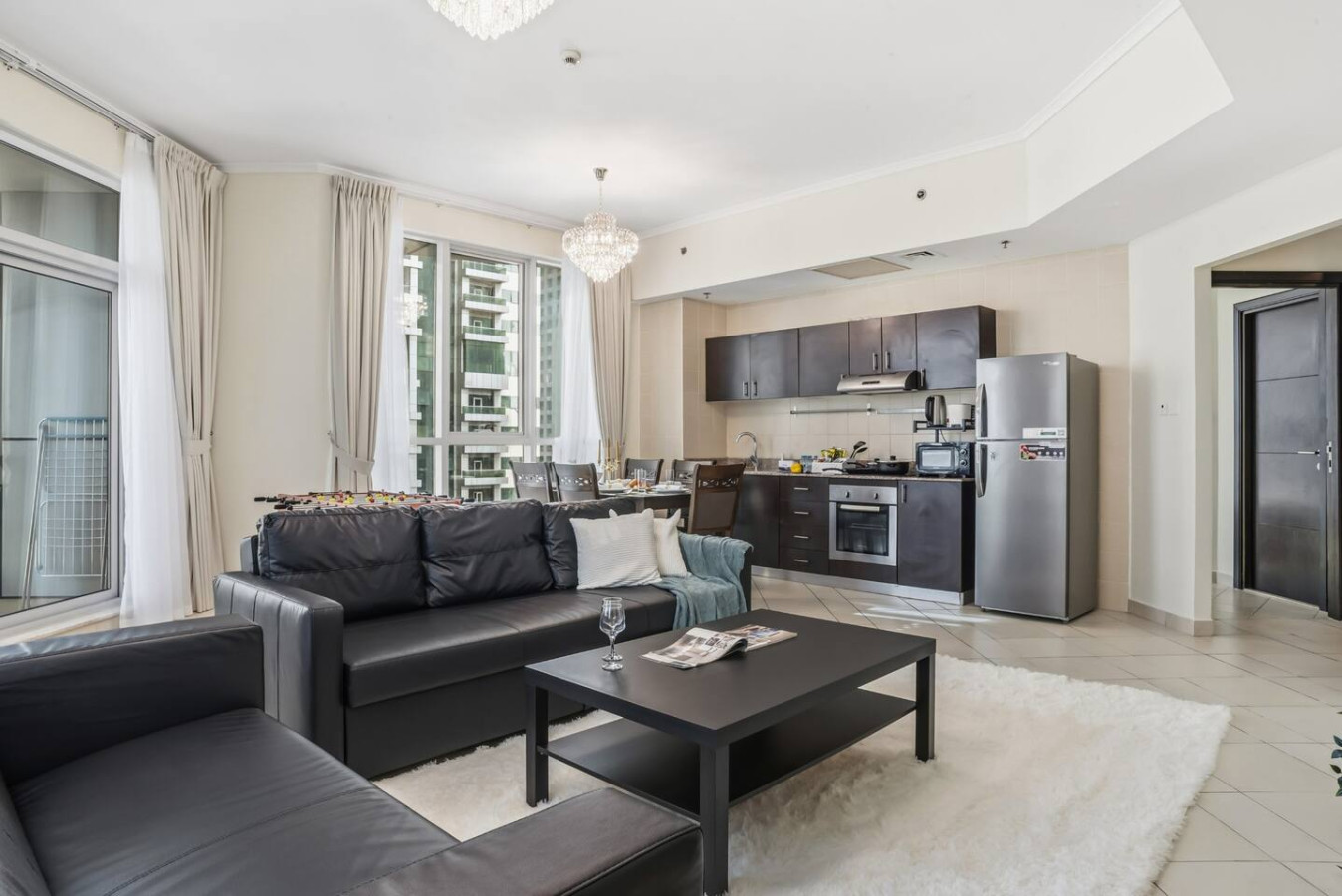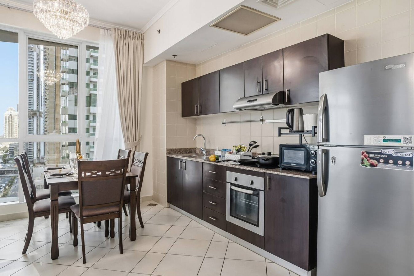You’re a short walk from Marina Walk, JBR Beach, and The Beach at JBR. Coffee shops, gyms, supermarkets, salons, and pharmacies are all nearby. Dinner options range from casual bites to upscale dining, all within minutes.