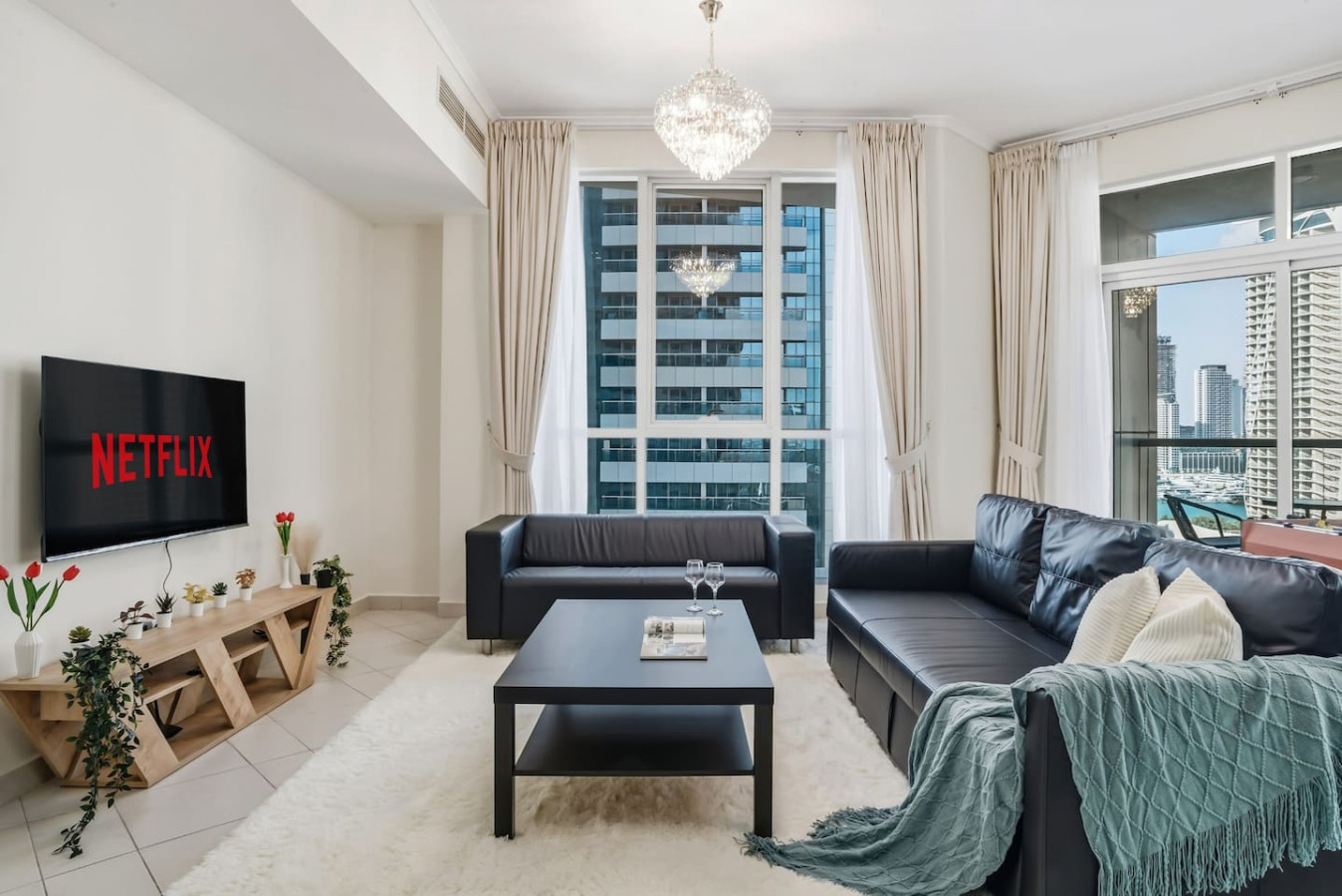 Getting around is simple. Dubai Marina Tram and Metro stations are close, making it easy to reach Downtown Dubai, DIFC, Mall of the Emirates, or Dubai Mall without a car. Taxis and ride-hailing are always available.