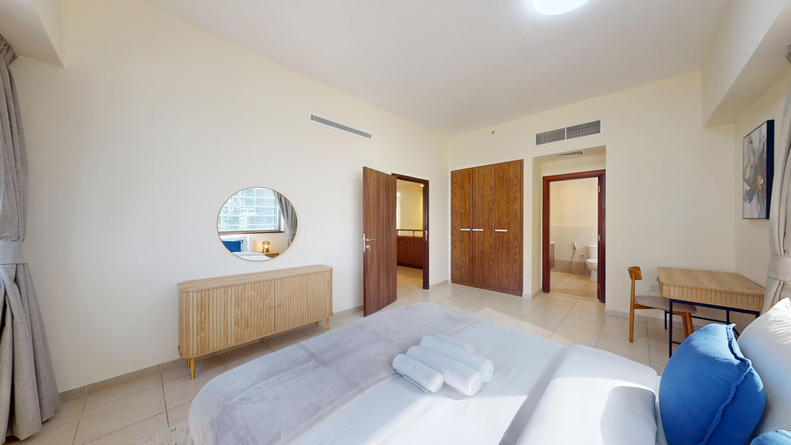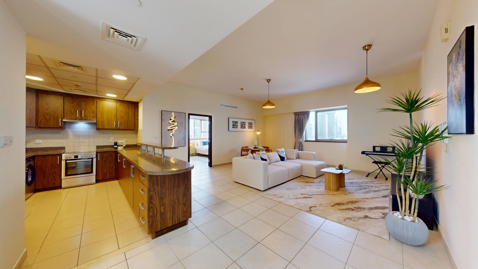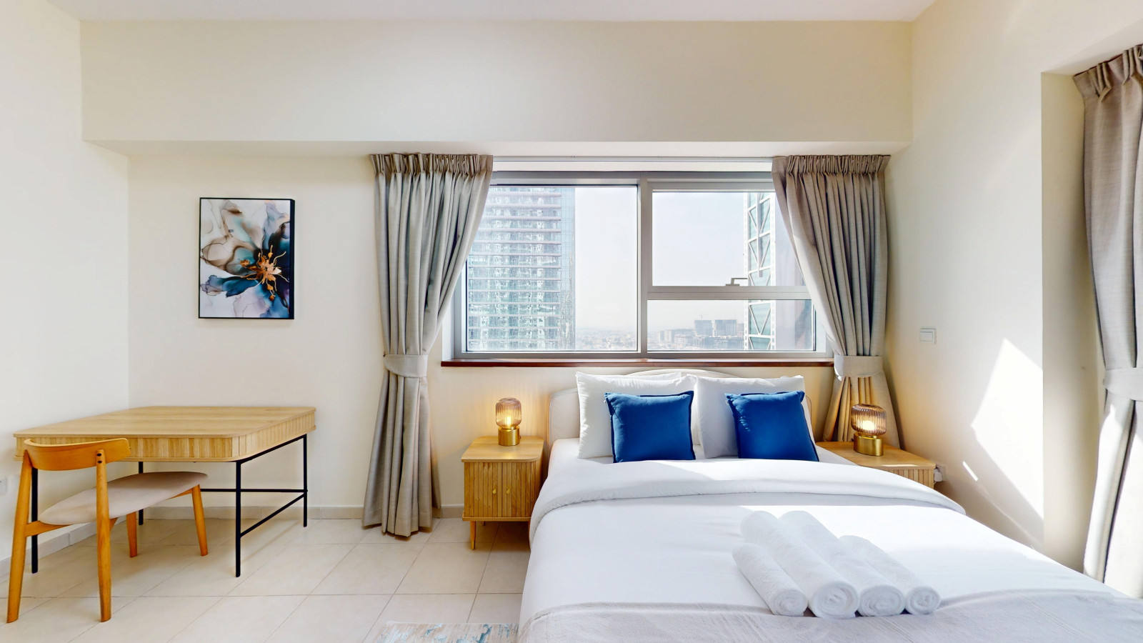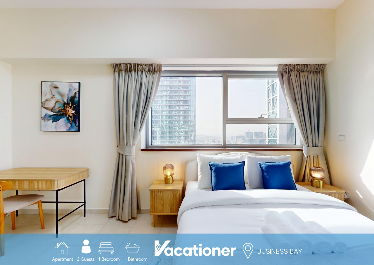 Stay in this sleek one-bedroom apartment in Business Bay designed for comfort and convenience. The place feels spacious and airy – featuring tasteful furnishings and all the comforts of home. Unwind in a cozy bedroom with premium bedding, and enjoy a fully equipped kitchen with modern appliances for easy meal preparation.