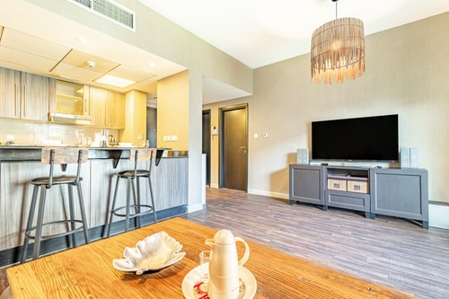 The apartment also offers easy access to Abu Dhabi International Airport, making travel a breeze.