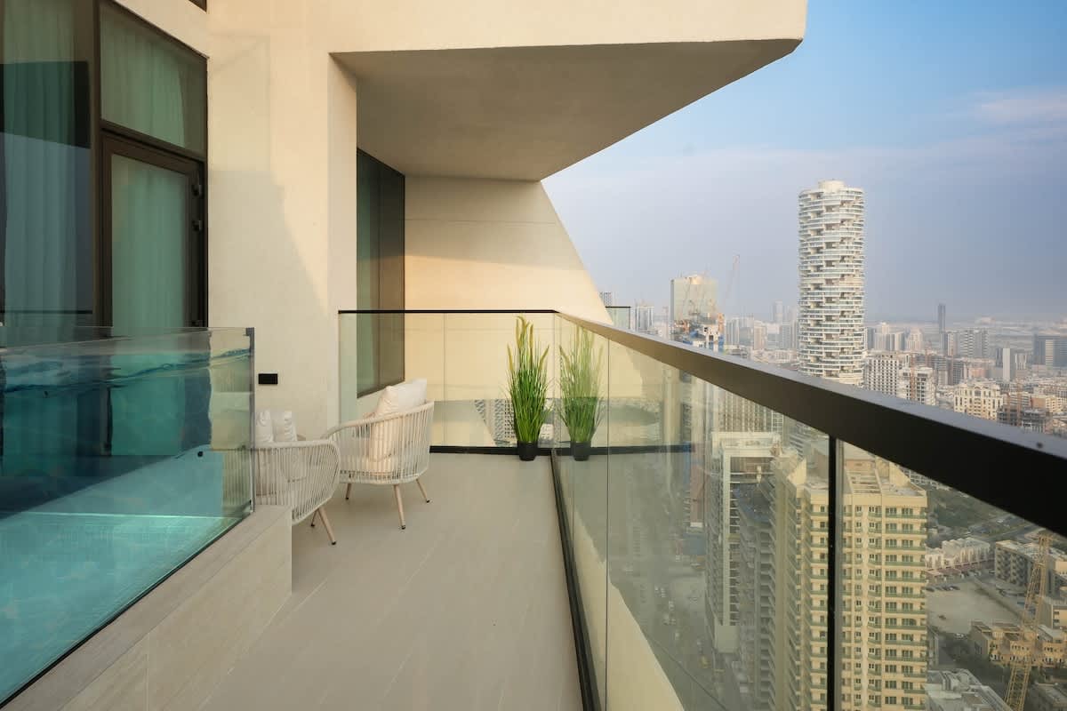 An exclusive luxury apartment designed for guests who appreciate refined design and privacy. With a private pool on the balcony, calm interiors, and access to premium facilities, this space offers a discreet and elevated stay in JVC. Ideal for city breaks or extended visits.