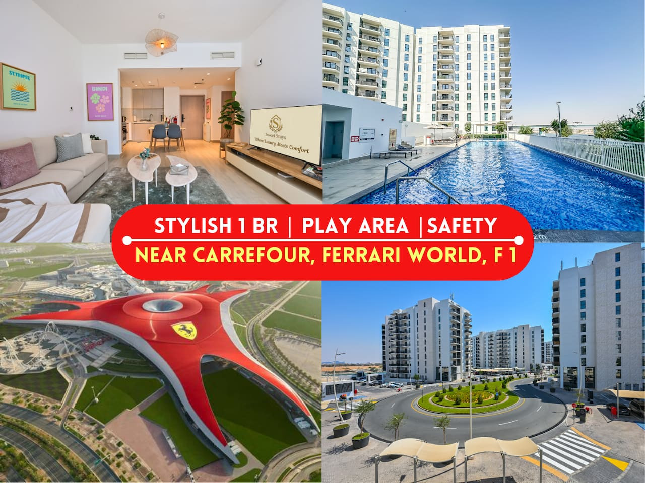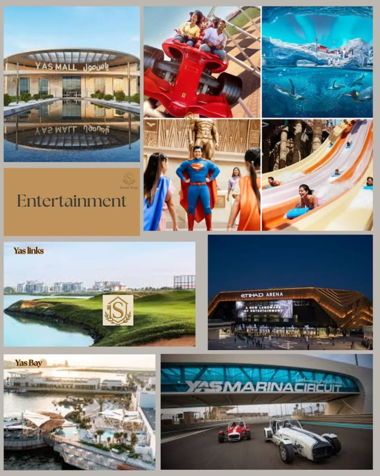 Experience refined living on Yas Island in this elegant one bedroom residence with a partial canal view. The apartment includes premium furnishings, high speed WiFi, smart TV, a fully equipped kitchen and a private balcony. Guests enjoy a pool, gym and landscaped promenades. Located near Yas Gateway Park and minutes from Yas Mall, Ferrari World, Warner Bros World, SeaWorld and the Formula 1 circuit, it is ideal for both business and leisure stays.