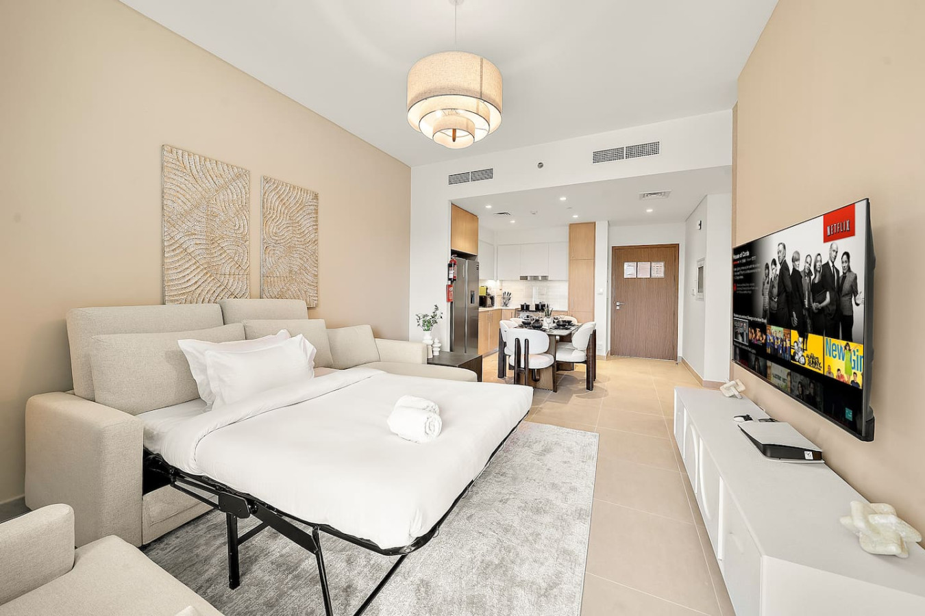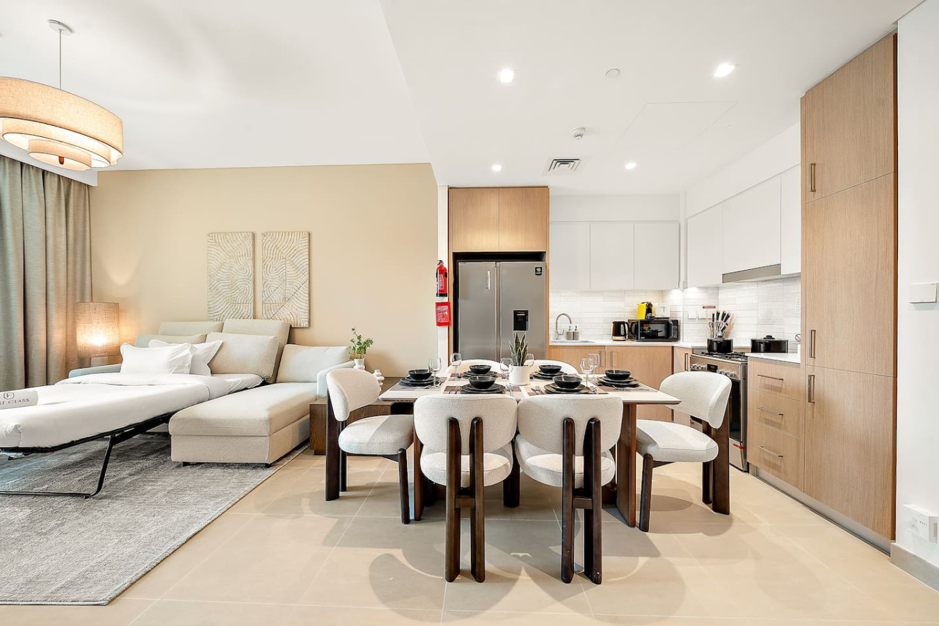 It is fully equipped with sleek stainless-steel appliances, ideal for preparing anything from a quick snack to a gourmet three-course meal. With spacious quartz countertops, it provides ample space for you to cook like a MasterChef and truly enjoy the art of cooking.