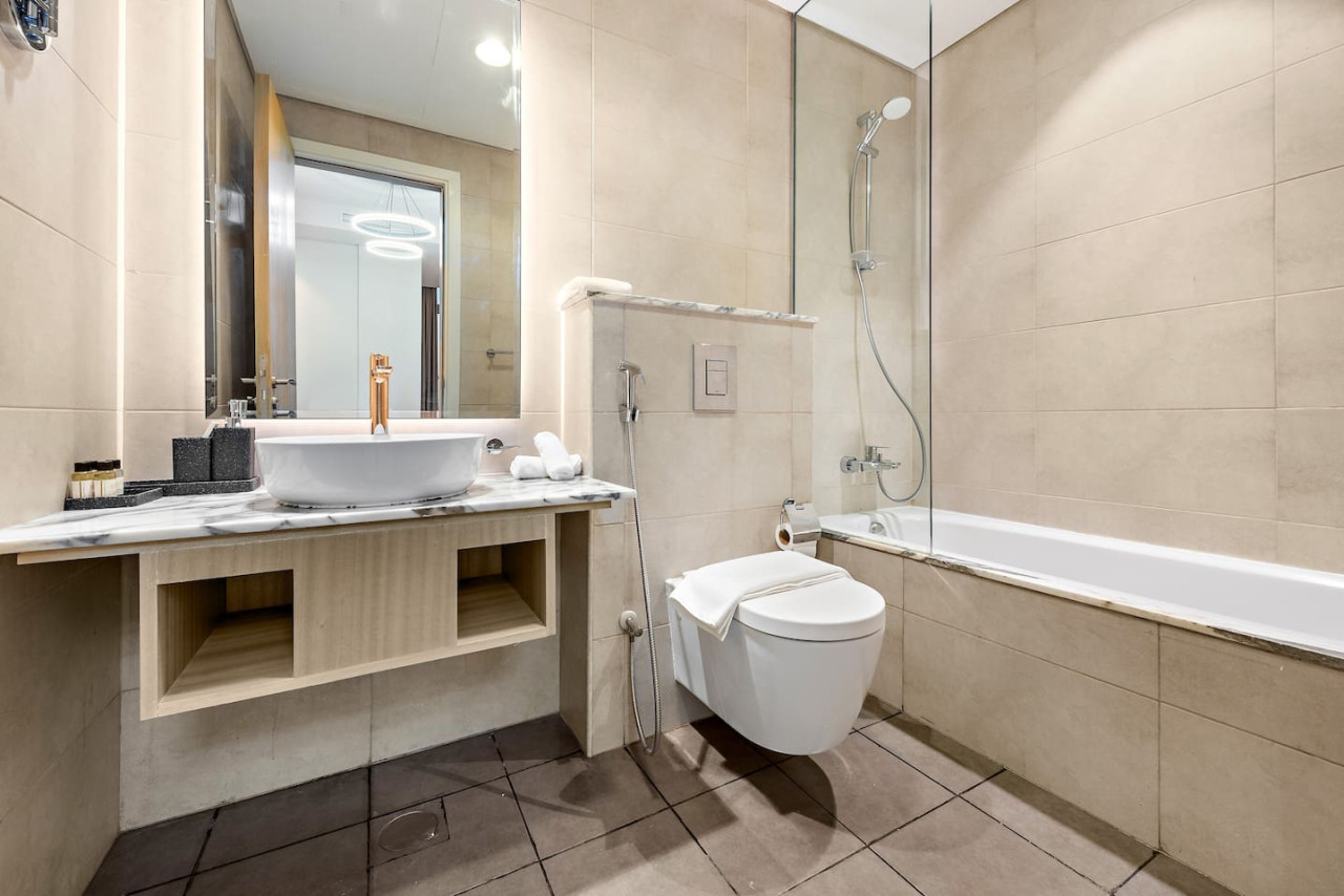 We had a wonderful stay at this apartment and truly loved it. The location is extremely convenient. It’s walkable to Dubai Mall, close to many great restaurants, and there’s a supermarket around the corner. The amenities are excellent. The rooftop pool is stunning, and the gym is large, modern, and very well equipped. We also loved the coffee shop and restaurant and enjoyed great breakfasts and coffee breaks there. The apartment itself is on the 60th floor with incredible views. It’s very spacious, filled with natural light, and furnished with modern, clean, uncluttered pieces. The bedrooms and bathrooms are also spacious and very clean, making the unit extremely comfortable. A small note is that there are no outlets in the bathrooms, but there are outlets by a mirror in one of the bedrooms, which made getting ready easy. Another minor inconvenience is that only one key is provided, so some coordination is needed. Overall, this unit offers excellent value. We highly recommend it.