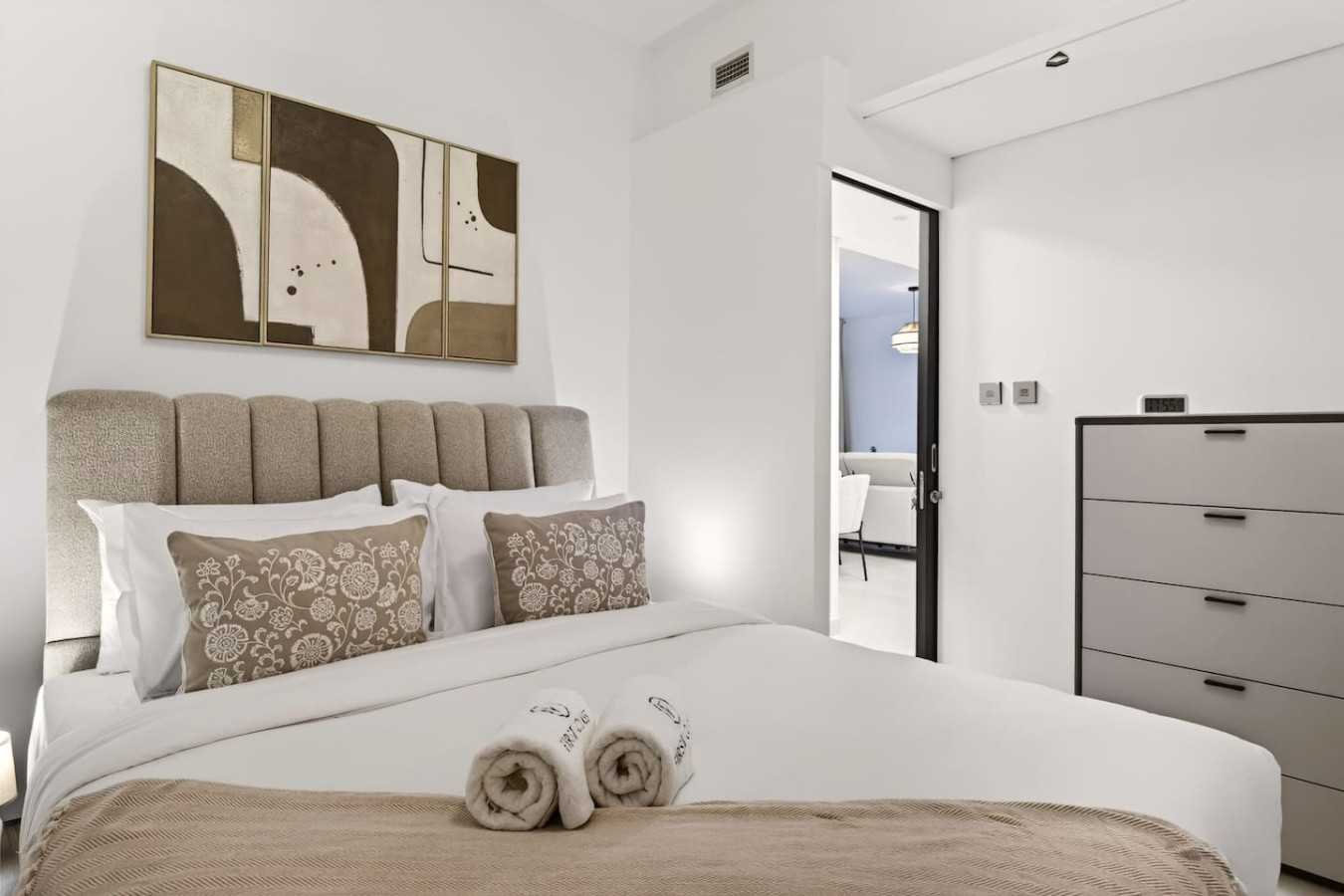 Discover refined city living in this stylish 2-bedroom, steps from Dubai Opera & the vibrant Opera District 🎭 Just a 5-minute walk to Burj Khalifa/Dubai Mall Metro 🚇 Enjoy a warm, inviting space designed for modern urban living, featuring elegant décor, cozy comforts, and a relaxing atmosphere ✨ The contemporary design blends seamlessly with comfort, creating the perfect stay in the heart of Downtown Dubai 🌆