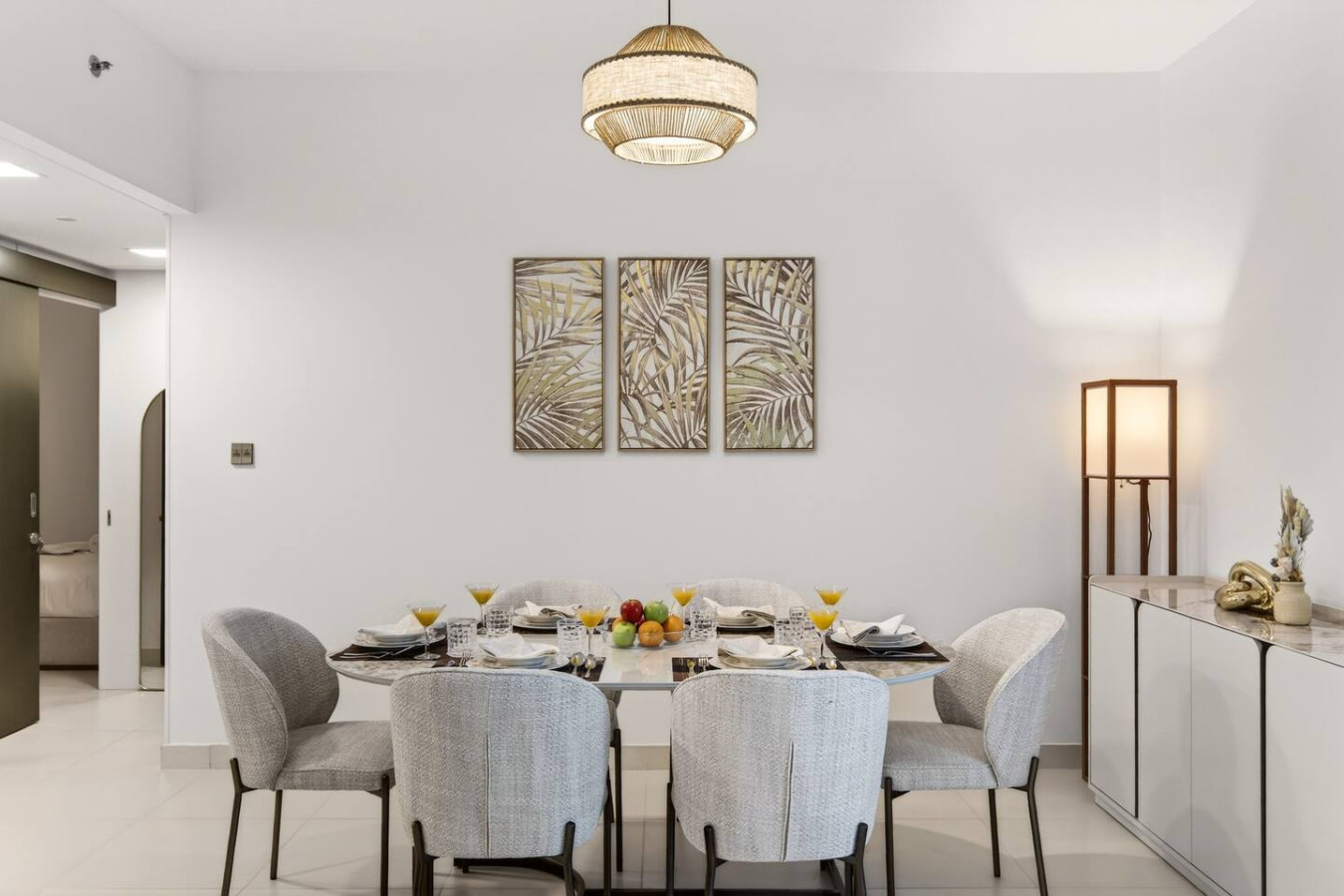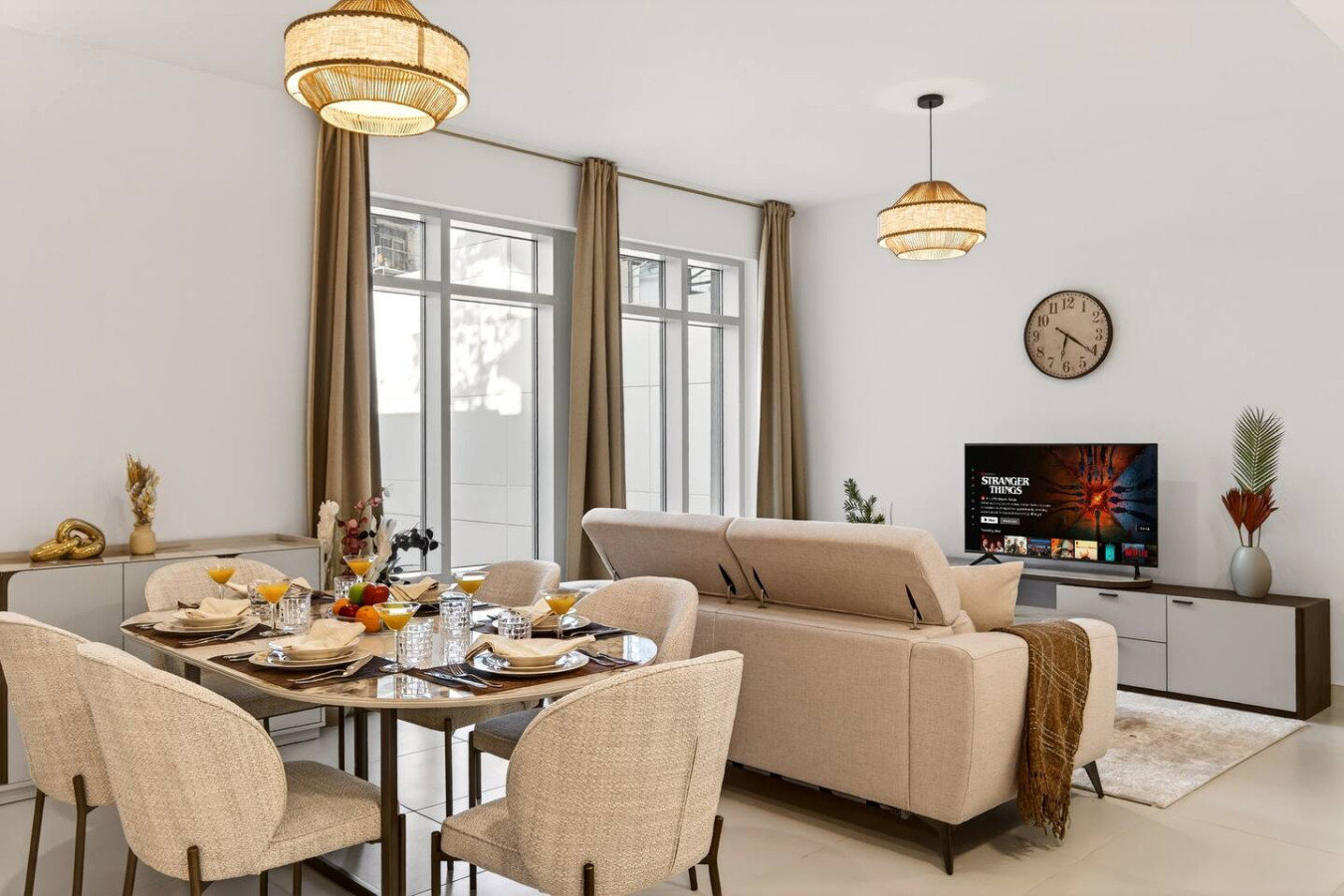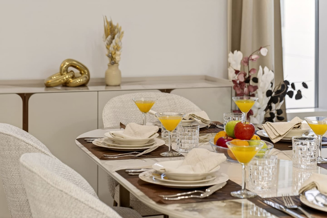 Have a few drinks in the living room while the food is getting ready. Once it’s done, serve it at the inviting dining table and enjoy a tasty meal with your loved ones.