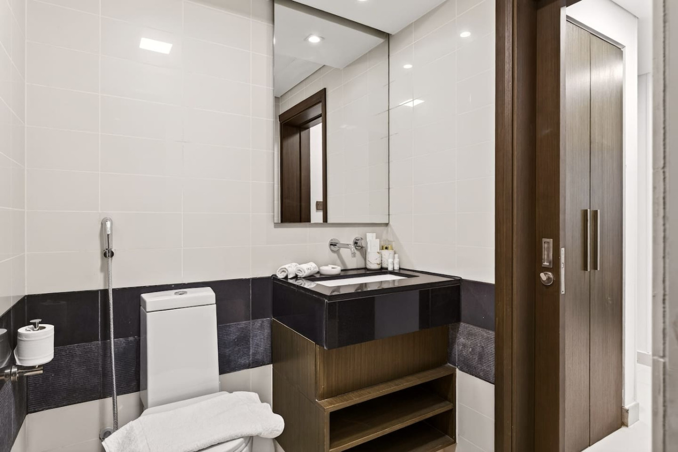 The bathroom is stocked with fresh towels and essential toiletries, so you don’t have to worry about bringing your own.