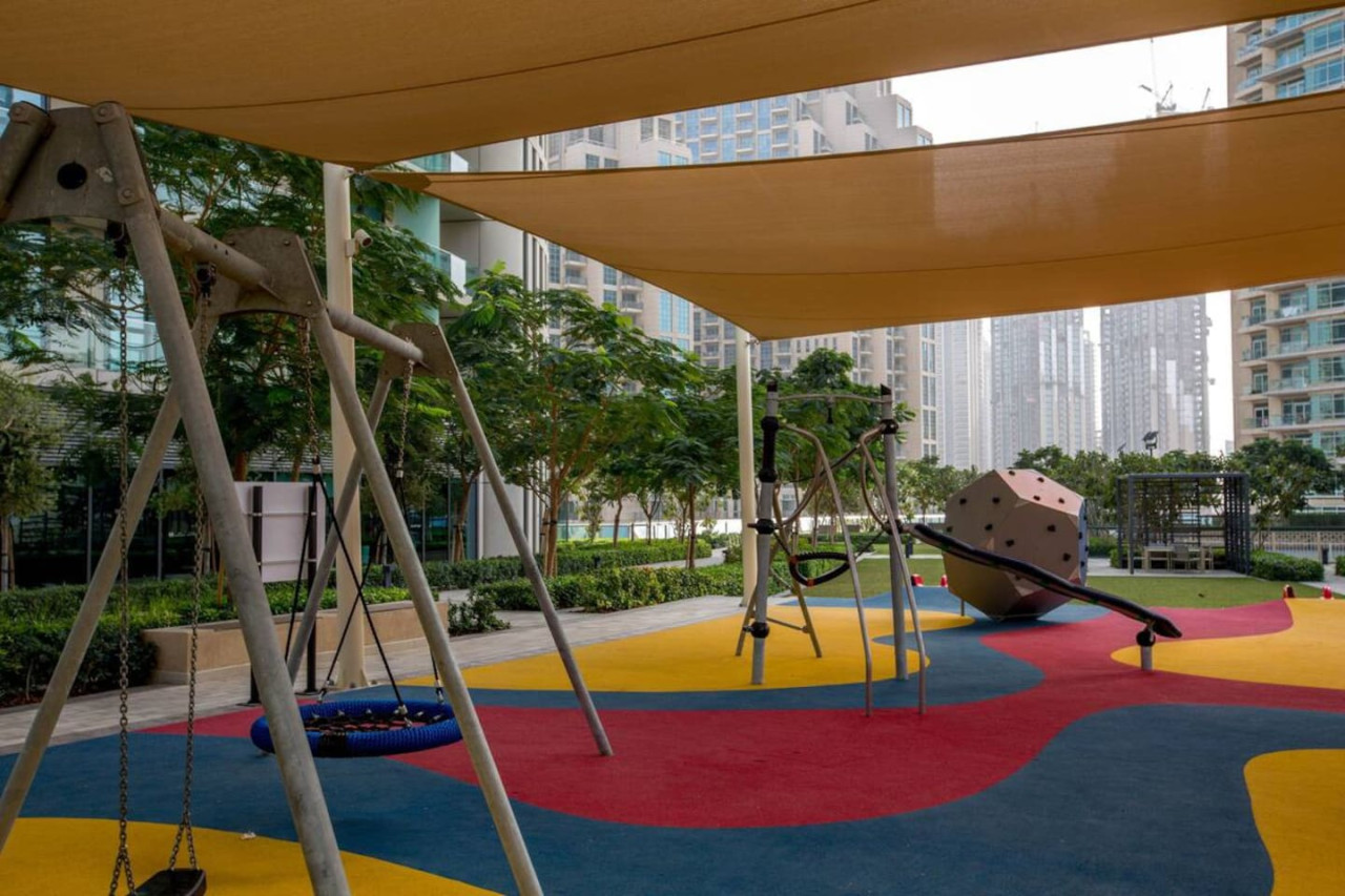 The apartment has a direct link to the Dubai Mall and Metro and 2 Swimming pools, gymnasium, games room with pool tables & football tables and a tennis court.