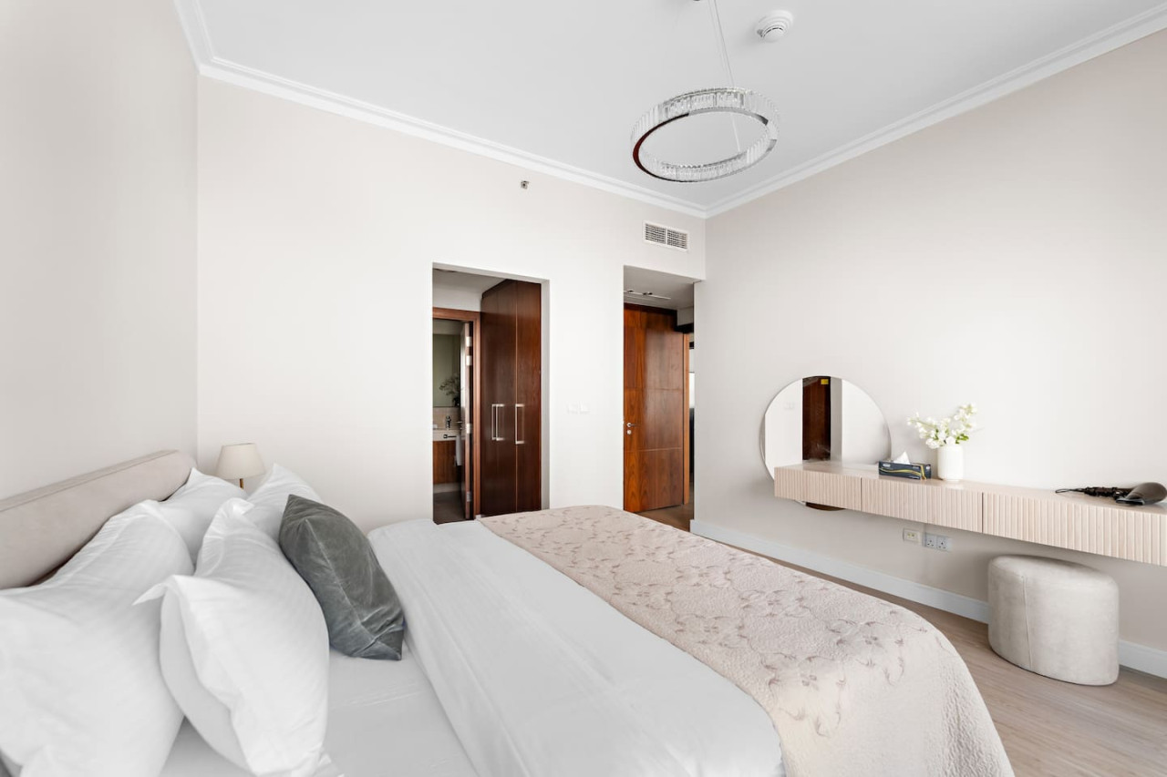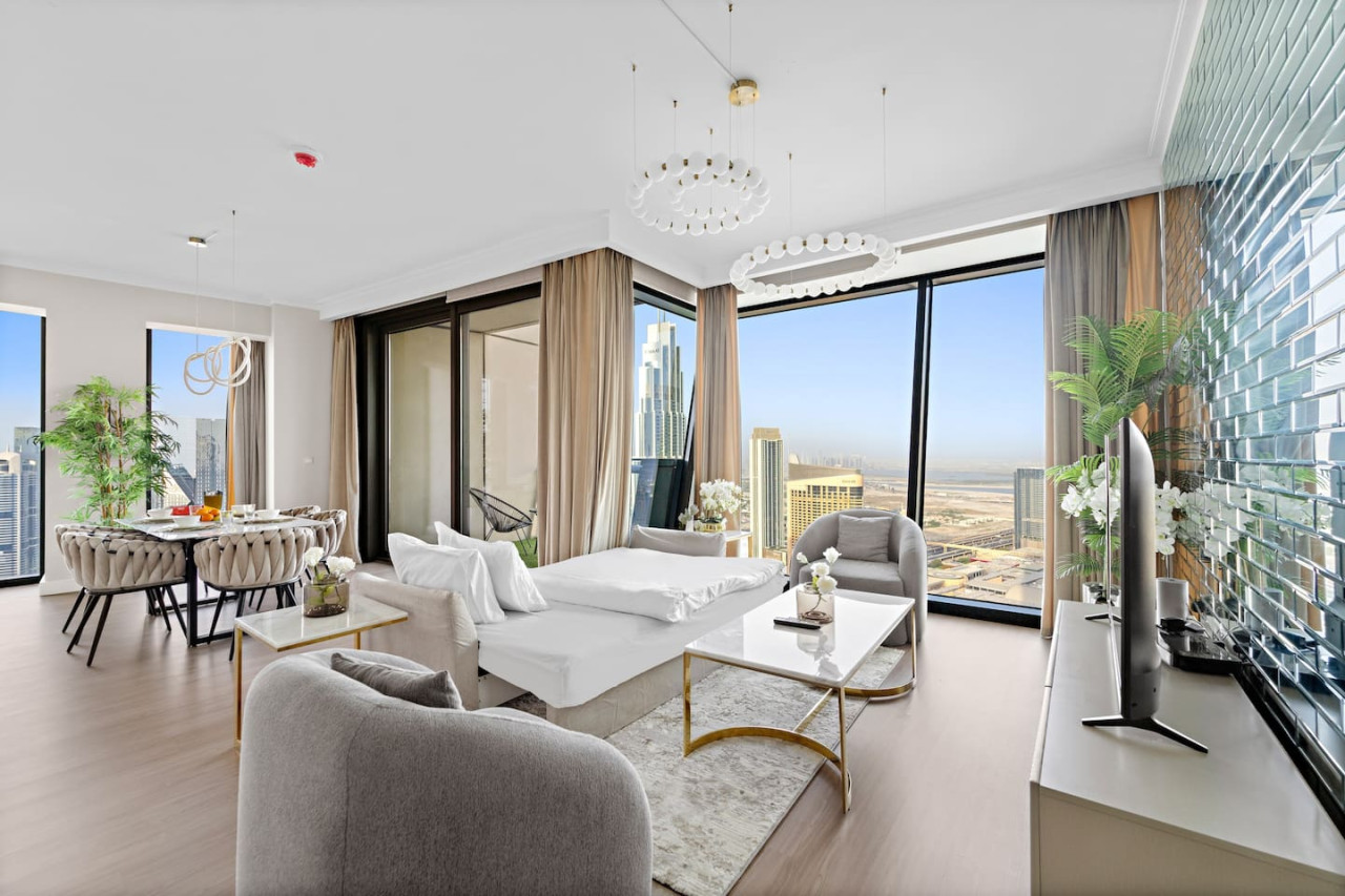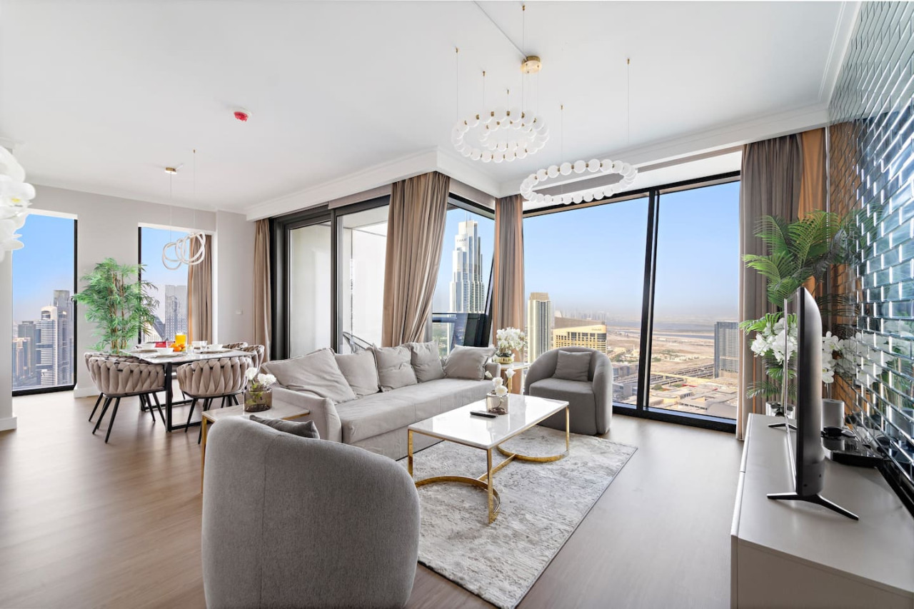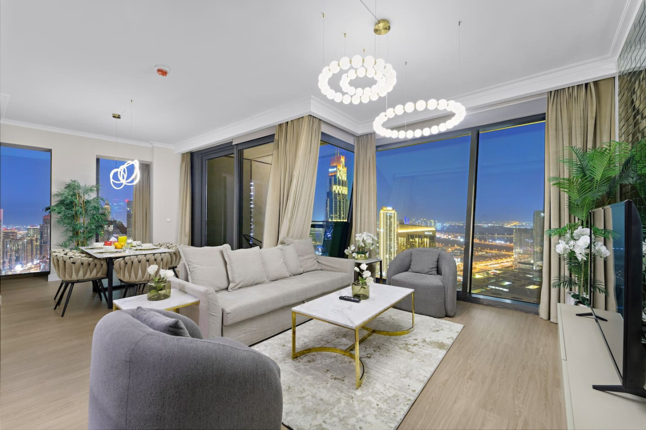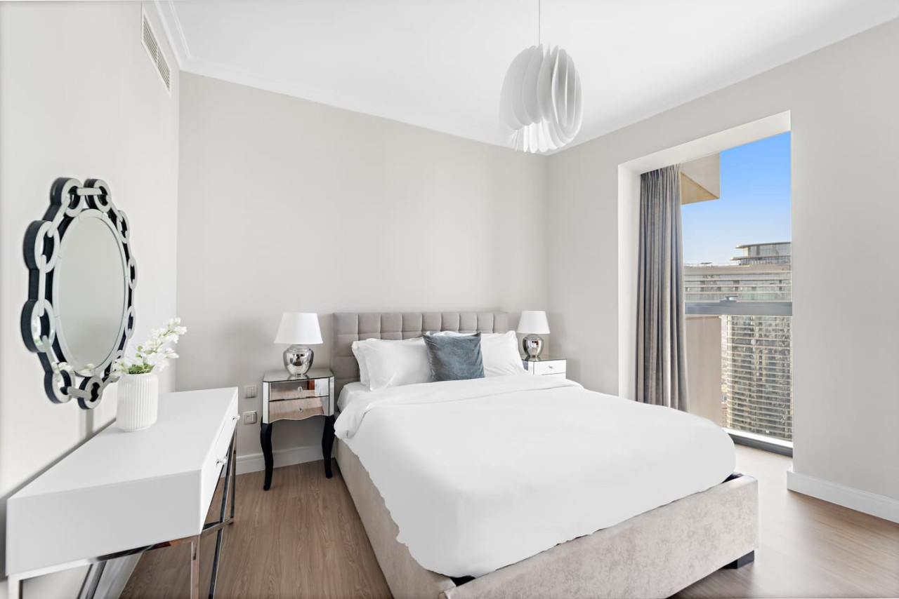 This newly furnished four bedroom apartment is located in one of the most premium buildings in Downtown Dubai – Burj Vista! This newly furnished apartment exemplifies the glamour and luxurious lifestyle of Dubai. It is literally located right across the road from the Burj Khalifa which is the tallest tower in the world! Also, the tower is connected to Dubai Mall (the world largest mall) via and indoor bridge! Wait till you see the rest of the facilities which include a fitness center, tennis courts, kids area, squash courts etc. This welcoming space draws you in with its refreshing colour palette, allowing you to energize and rejuvenate yourself. The flawless space consists of three majestic bedrooms with built-in wardrobes for your convenience, a kids bedroom, a living room, a terrace accompanied by the breathtaking views on the worlds tallest tower – The Burj Khalifa, the Dubai Mall, Dubai Fountain along with Downtown Dubai, and a state-of-the-art kitchen which is fully equipped with high-end appliances and a handy service window to the dining area, making it easy to serve up your favorite dishes. Our apartments are exclusively designed for your optimal privacy, we offer video intercom access, pool, fully-equipped gymnasium and for your safety and protection 24 hours’ security available in the building. Our apartments are rented solely for our guests thus, you have a key card system which allows you to utilize the private building parking, following an elevator straight to your apartment. The apartment itself is secluded and offers you prime privacy for your relaxation. As soon as you arrive you will be welcomed by our guest experience manager, who will be at your service 24 hours a day regarding any matter. One day prior to your departure I will contact you for your check out details. As we truly respect your privacy we will not cause any disturbance to you during your stay, until and unless you have requested it.
