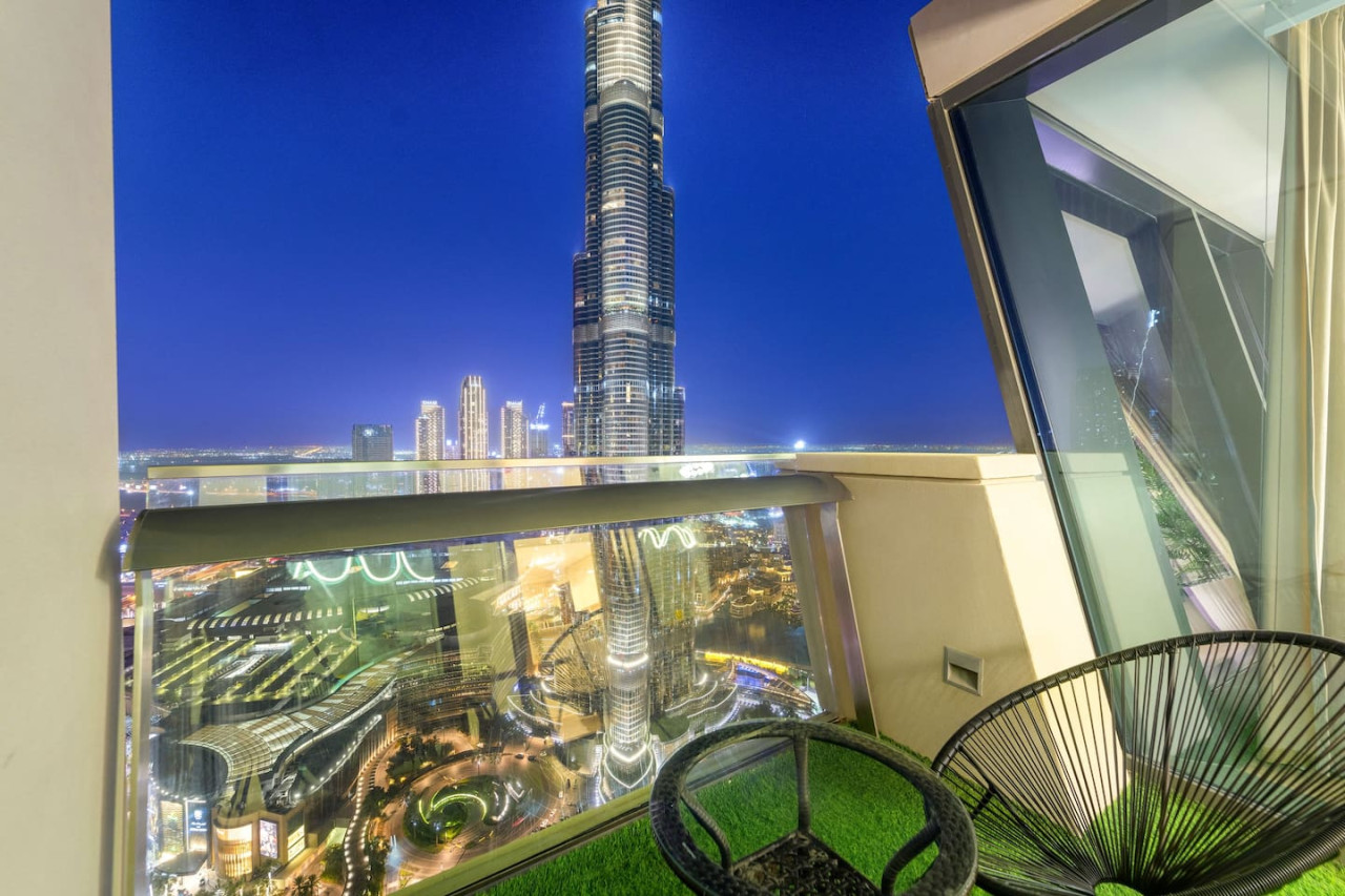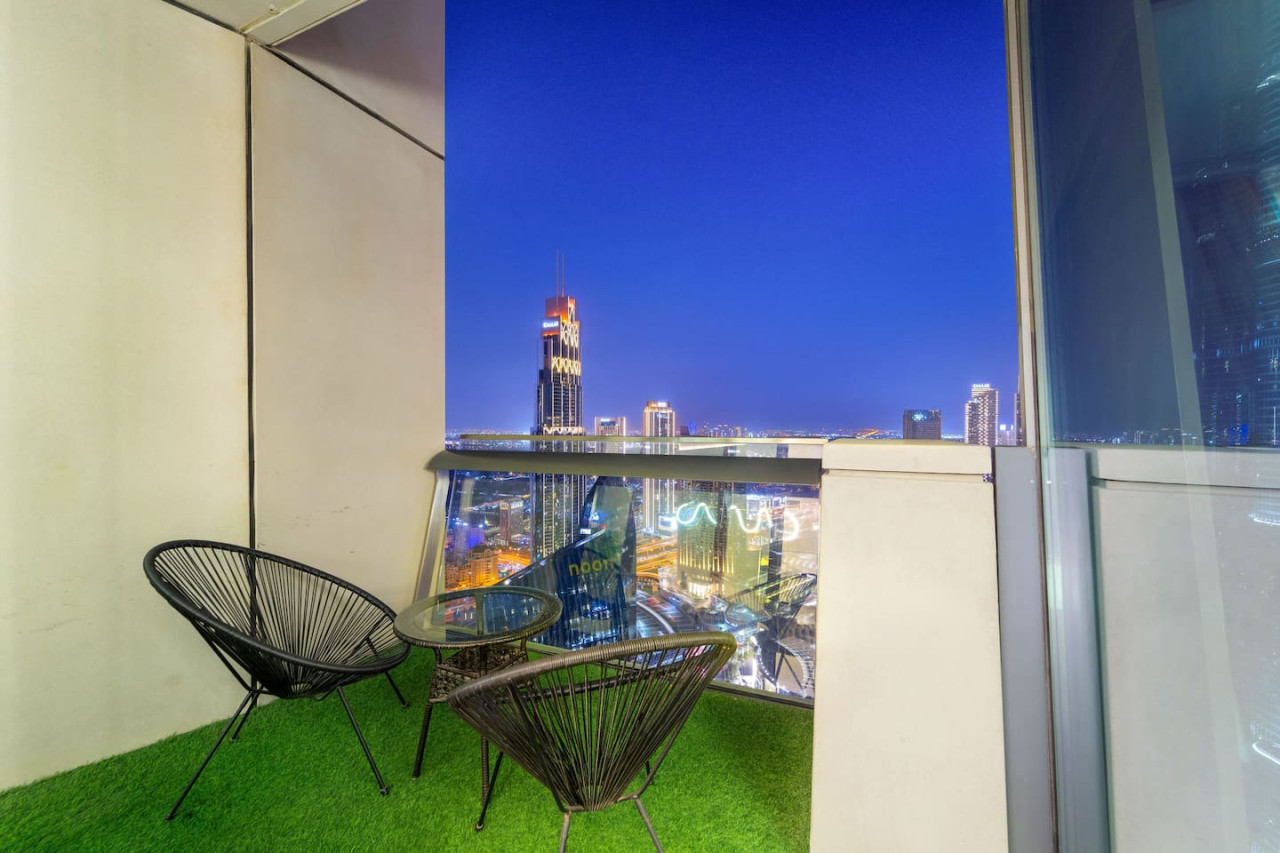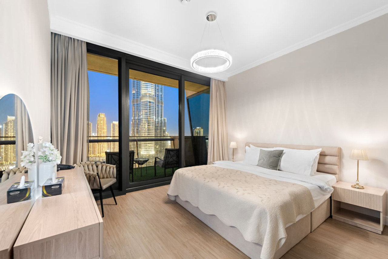 This luxuriously designed apartment has a direct full view from the balcony on the tallest building in the world Burj Khalifa and the famous dancing fountain.