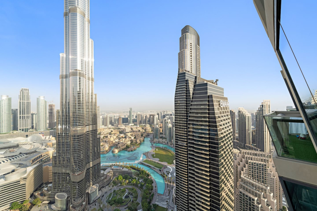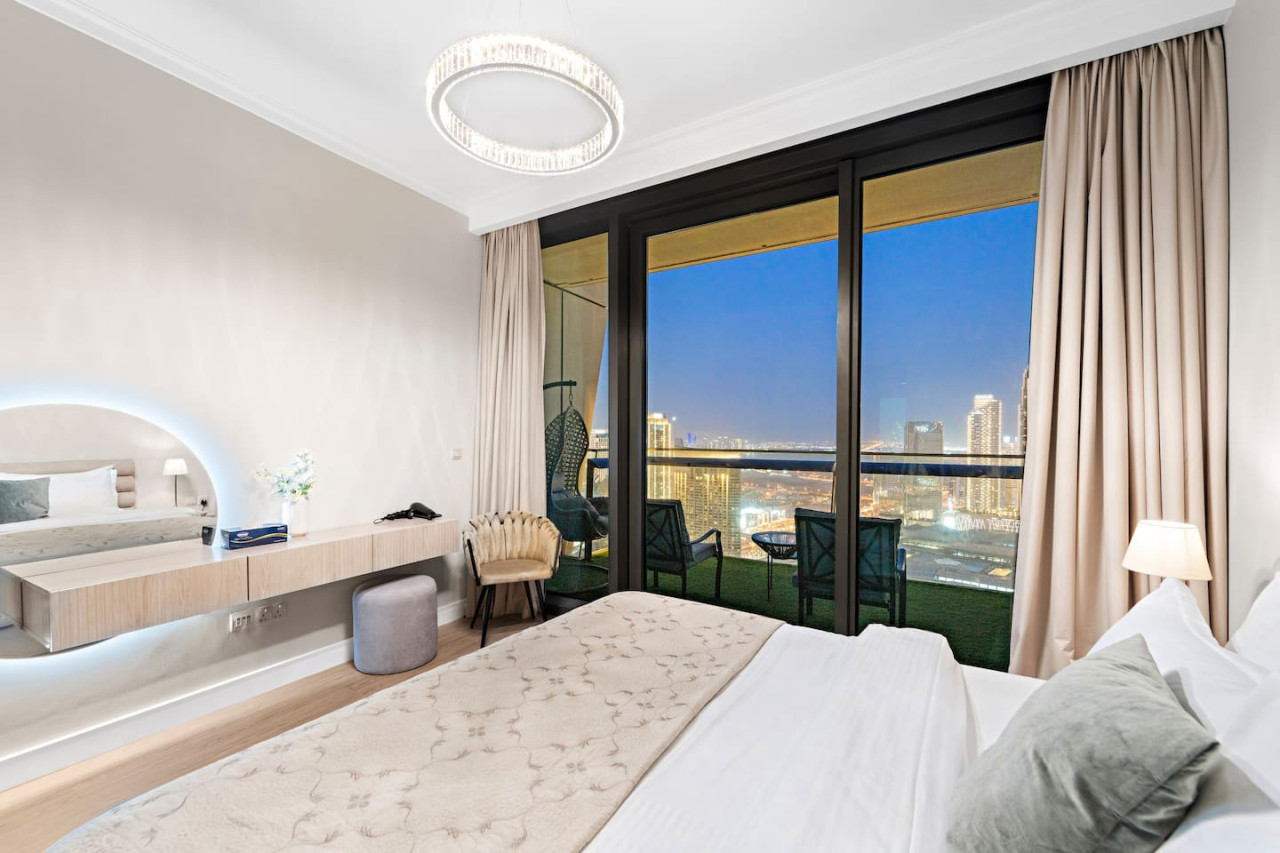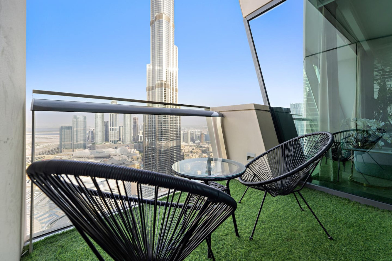 This luxuriously designed apartment has a direct full view from the balcony on the tallest building in the world Burj Khalifa and the famous dancing fountain.