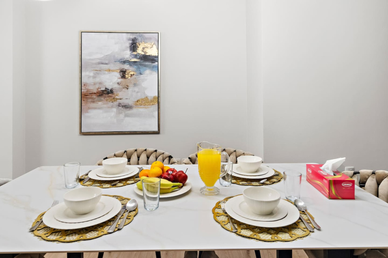 Have a few drinks in the living room while the food is getting ready. Once it’s done, serve it at the inviting dining table and enjoy a tasty meal with your loved ones.
