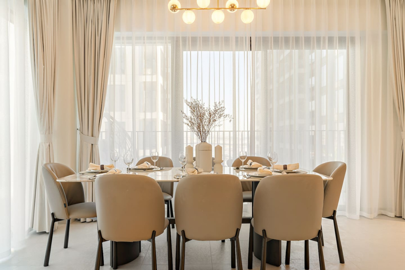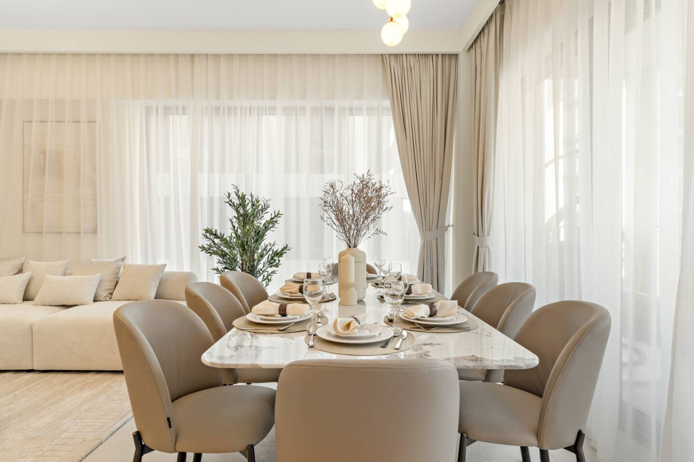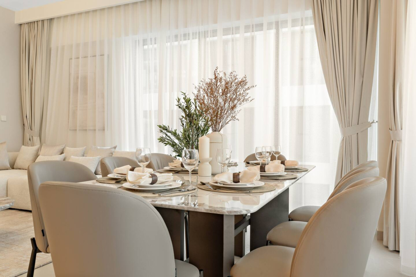 Have a few drinks in the living room while the food is getting ready. Once it’s done, serve it at the inviting dining table and enjoy a tasty meal with your loved ones.