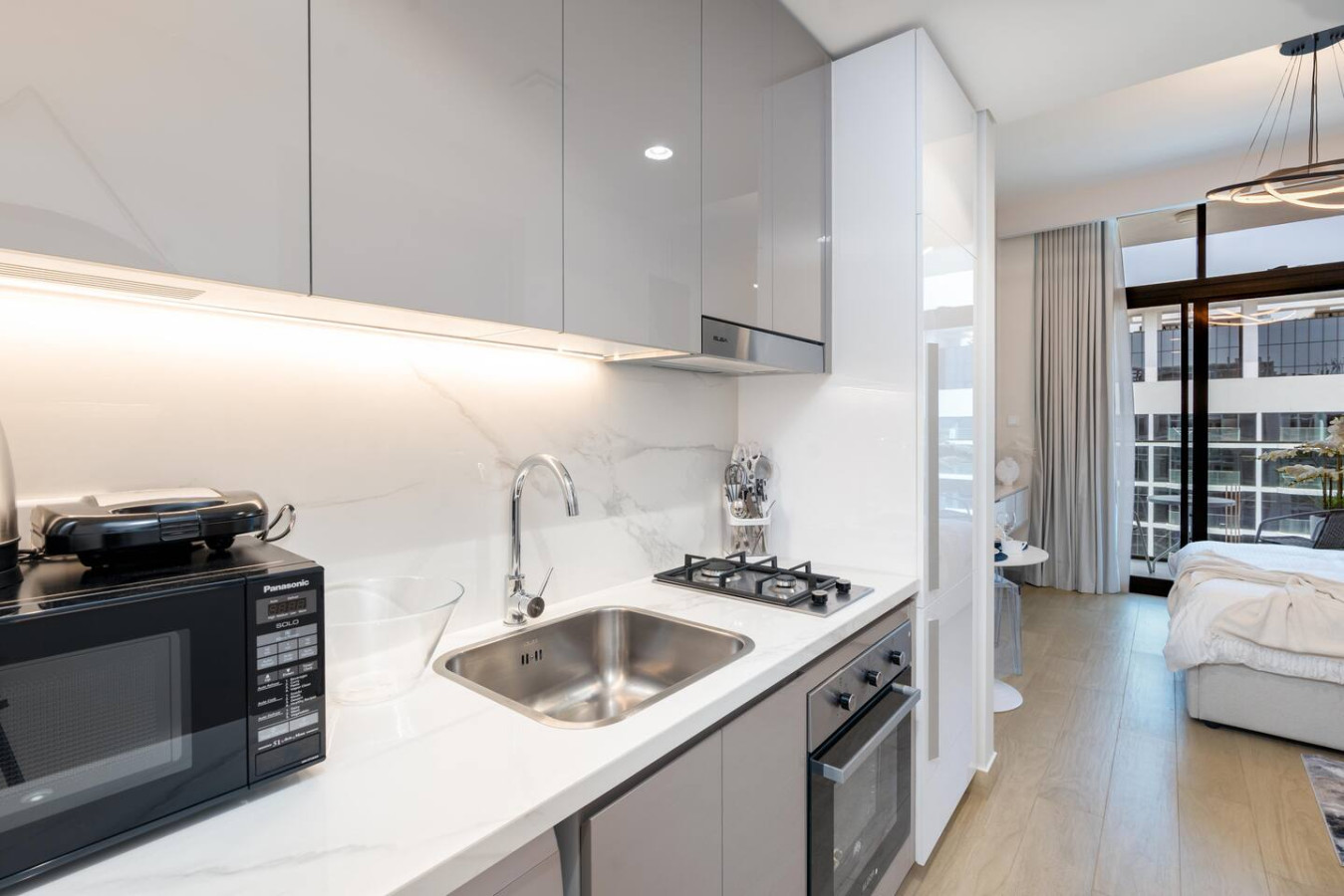 It is fully equipped with stainless-steel cooking appliances that make it suitable for preparing any meal, whether a simple breakfast, quick snack or a three-course gourmet dinner.