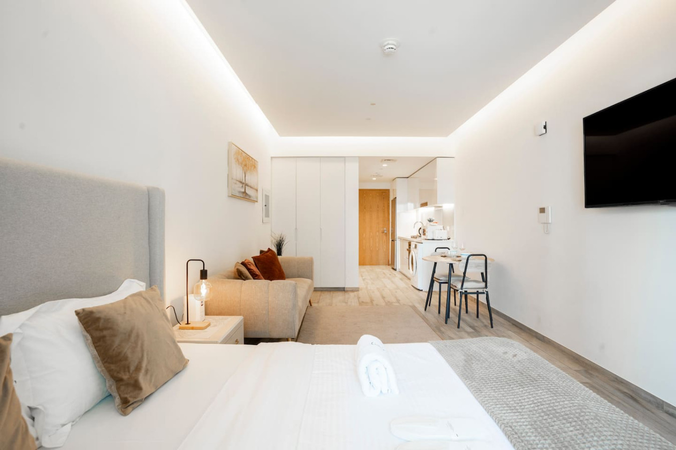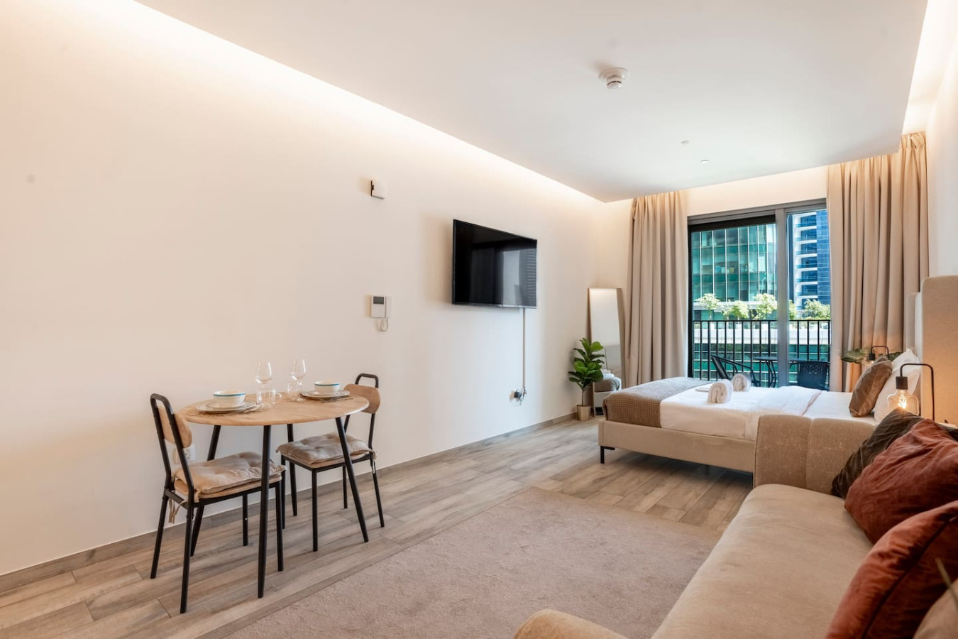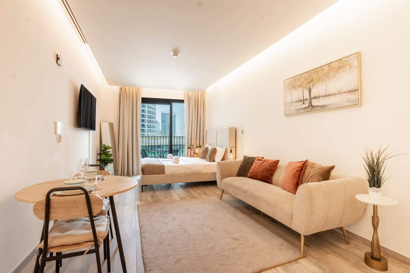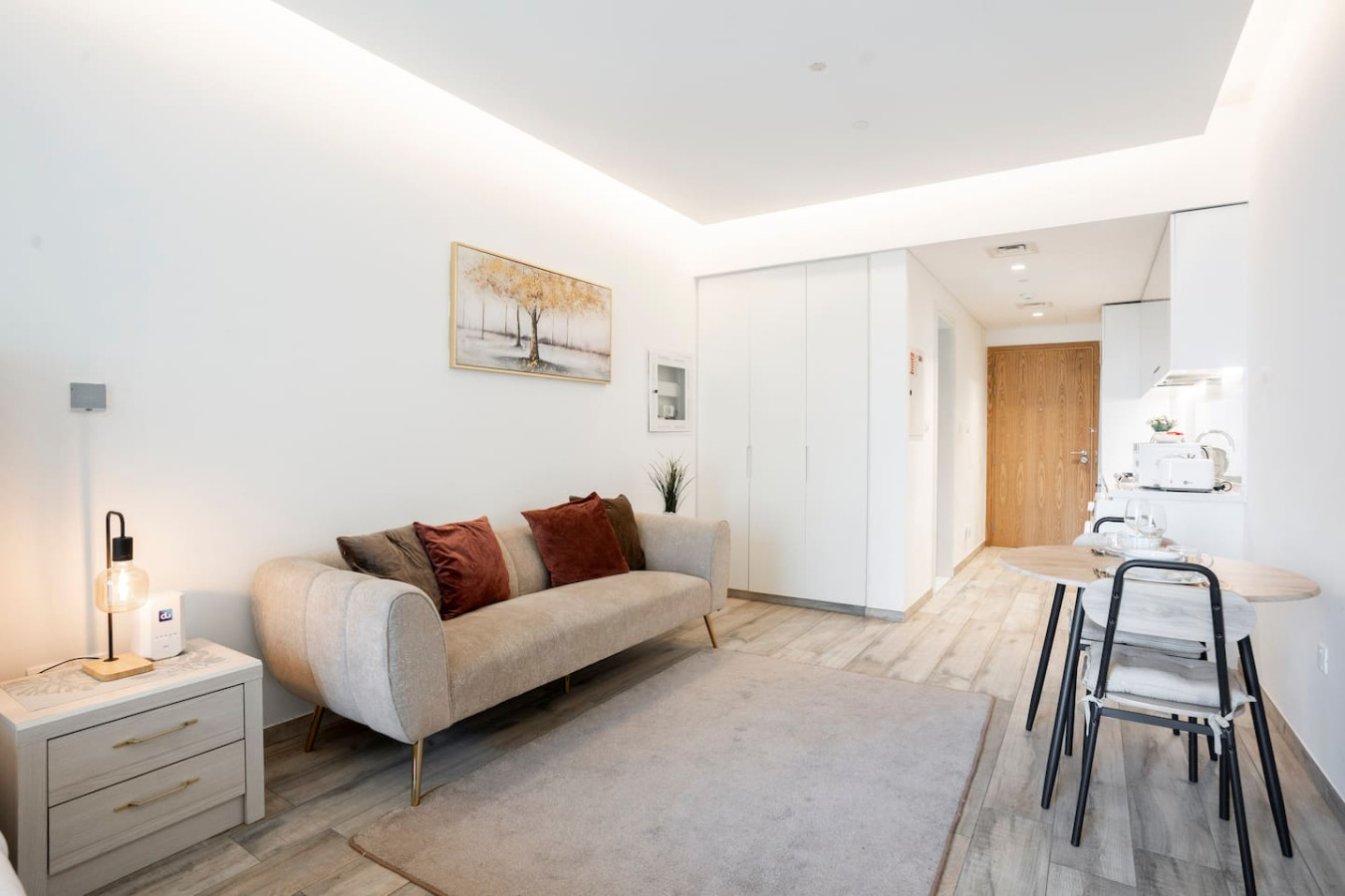 ✨ Unwind in this charming studio apartment 🌿, thoughtfully designed for a luxurious yet cozy stay. Bright interiors 🌞, modern furnishings 🛋️, and a fully equipped kitchen 🍳 make it feel like home. Enjoy exclusive amenities 💎, and a relaxing ambiance perfect for solo travelers or couples . Located in prime Dubai 📍, just minutes from dining 🍴, shopping 🛍️, and attractions 🌆, this retreat blends comfort, style, and convenience 💫.