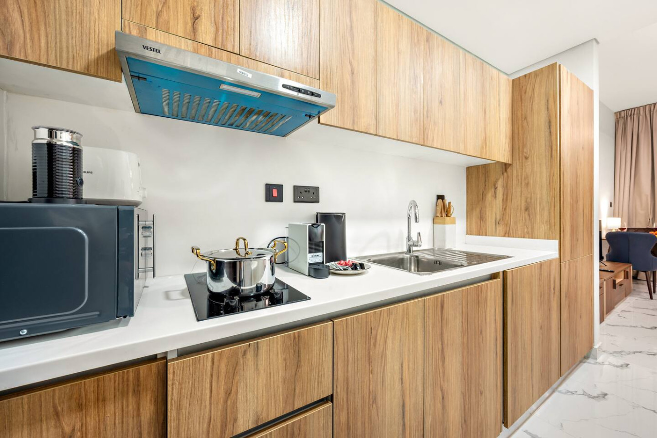 It is fully equipped with stainless-steel cooking appliances that make it suitable for preparing any meal, whether a simple breakfast, quick snack or a three-course gourmet dinner. Spacious quartz countertops and a central kitchen island provide plenty of room to work your MasterChef magic.