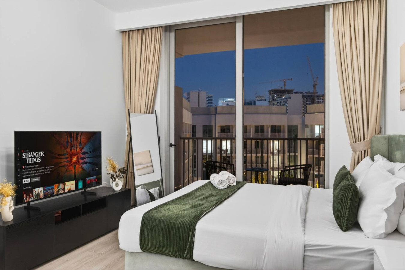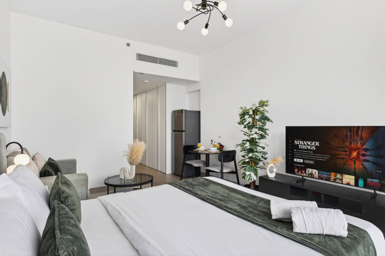 Enjoy a stylish stay with all essentials , ideal for solo travelers or couples . Easy access to public transport , shopping , and top Dubai attractions . Relax in modern comfort , savor cozy vibes , and feel at peace in a space made for you . Whether unwinding indoors or exploring the city , this charming home combines convenience, luxury, and calm.