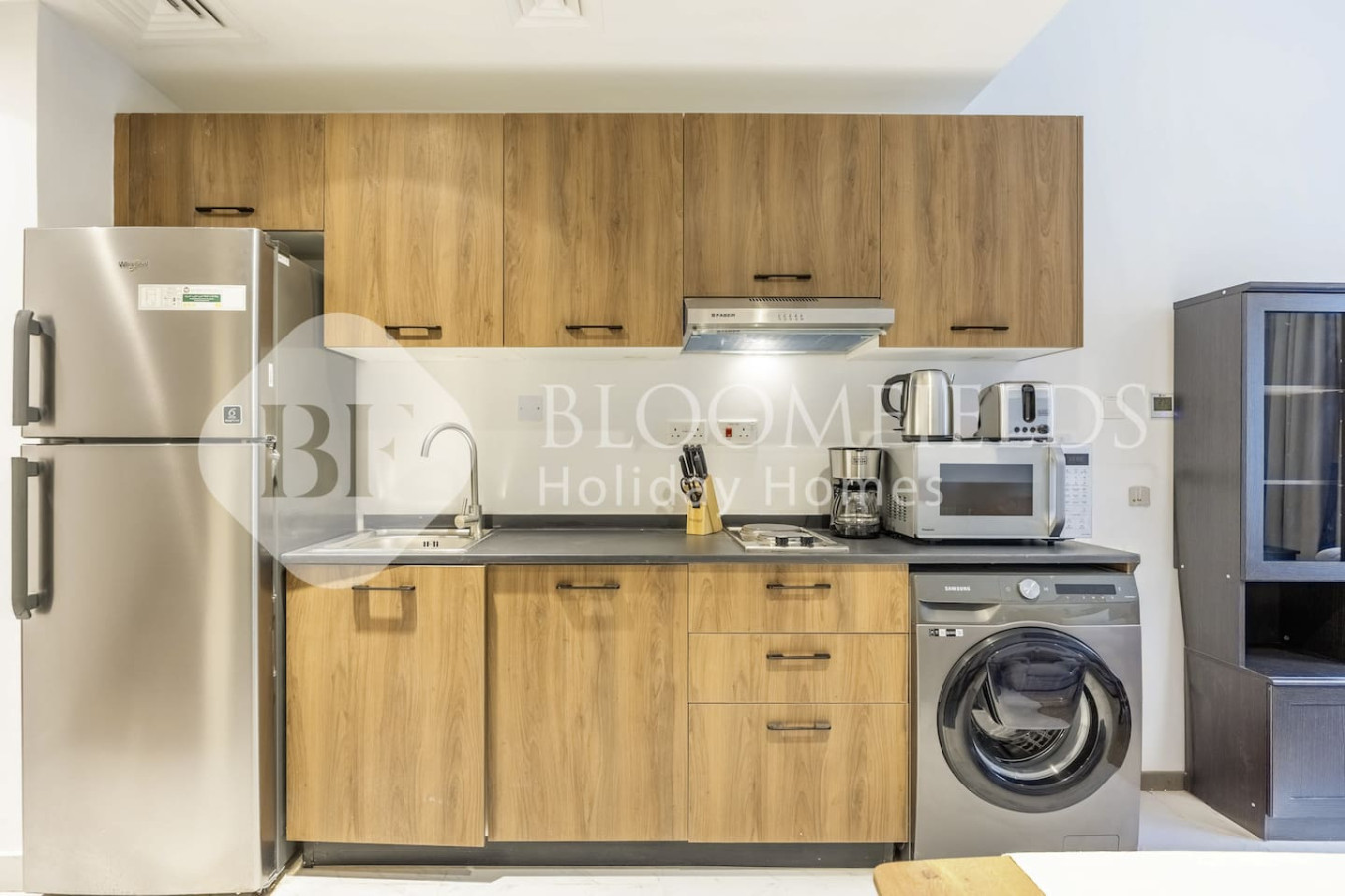 • Washing machine, iron, safe, and hair dryer included
