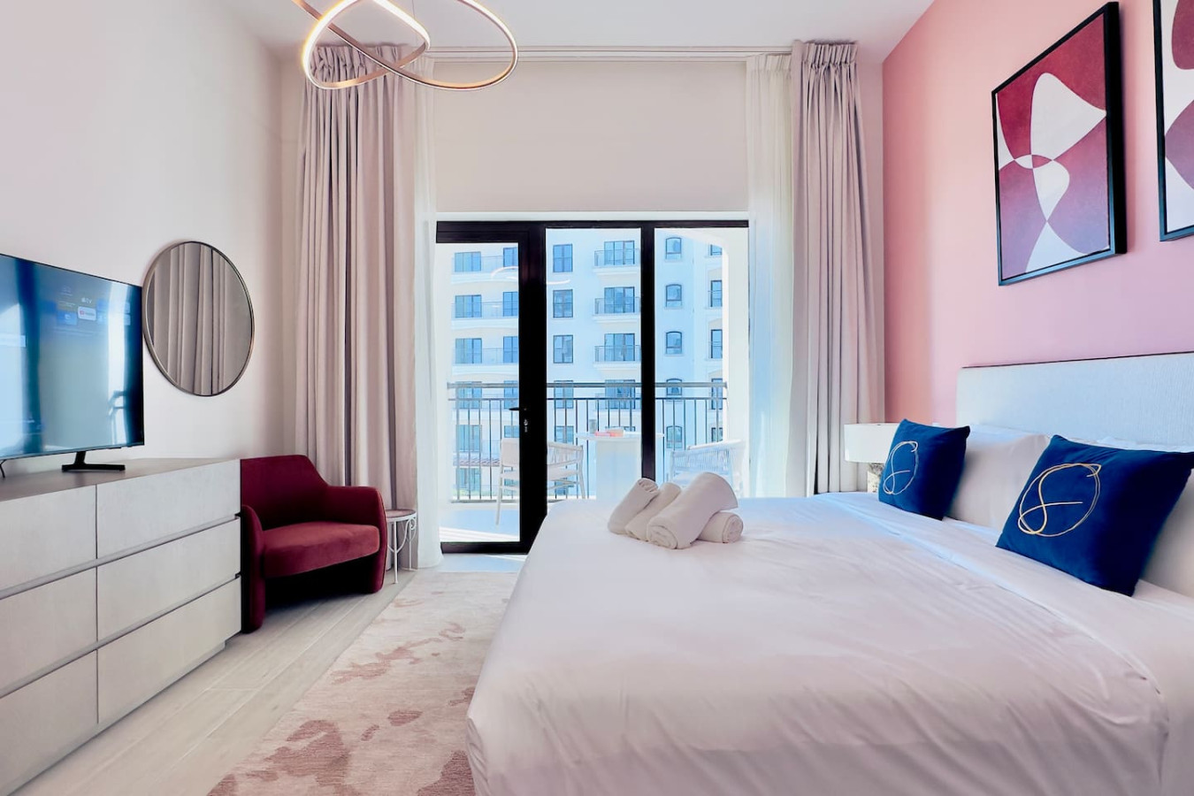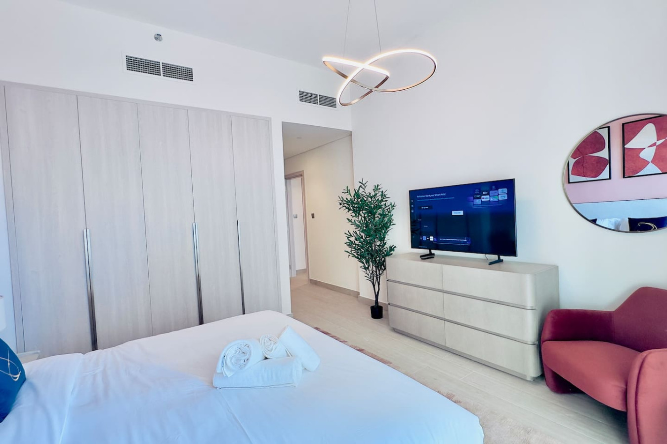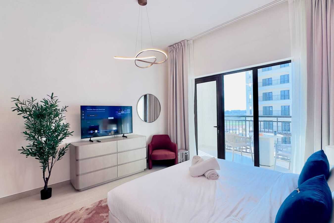 Overlooking the beautiful greens and offering resort-style amenities, this modern 2-bedroom apartment is perfect for families, couples, business travelers, and long stays.